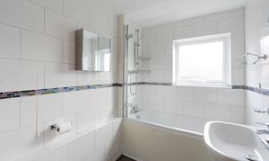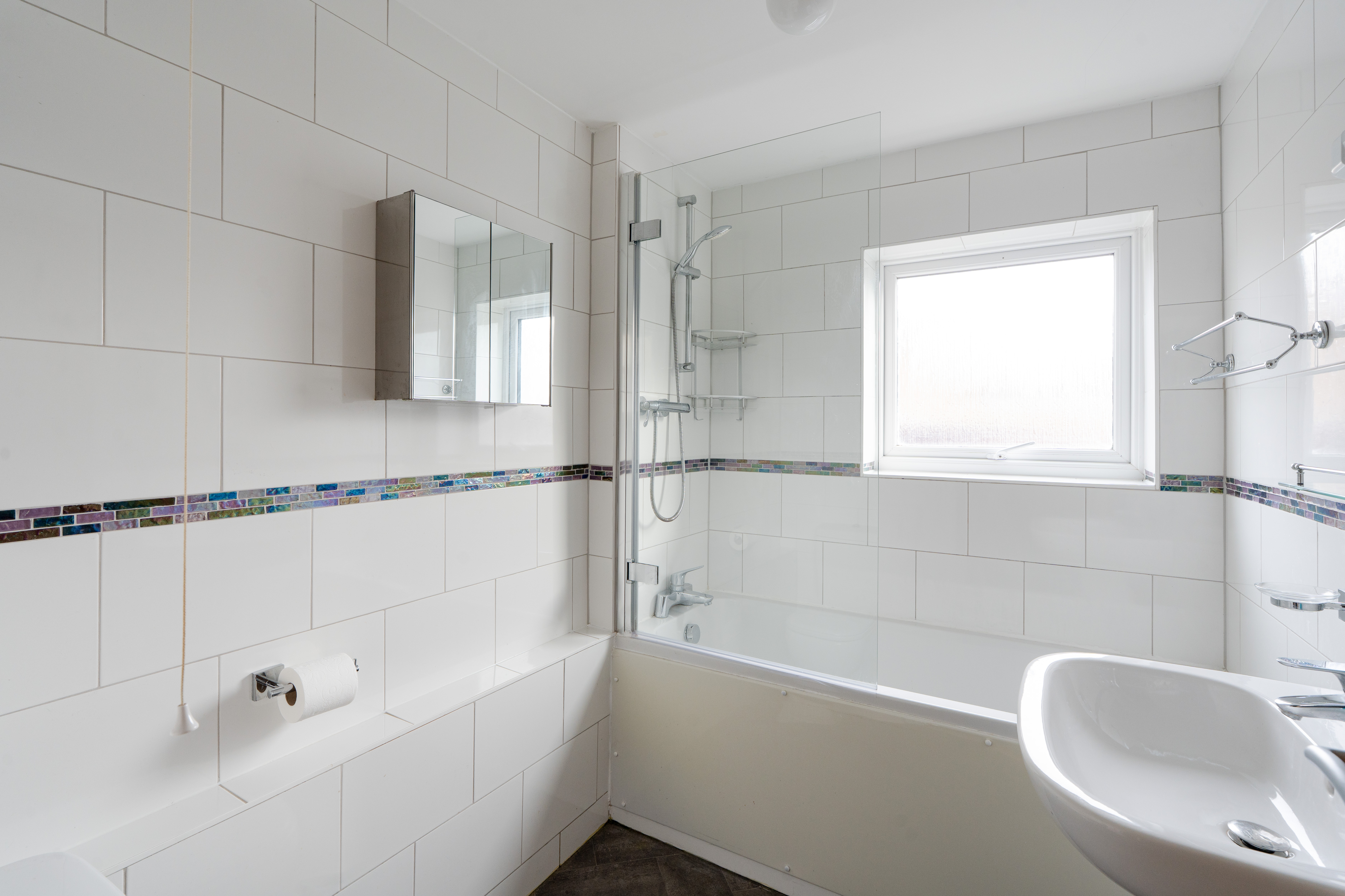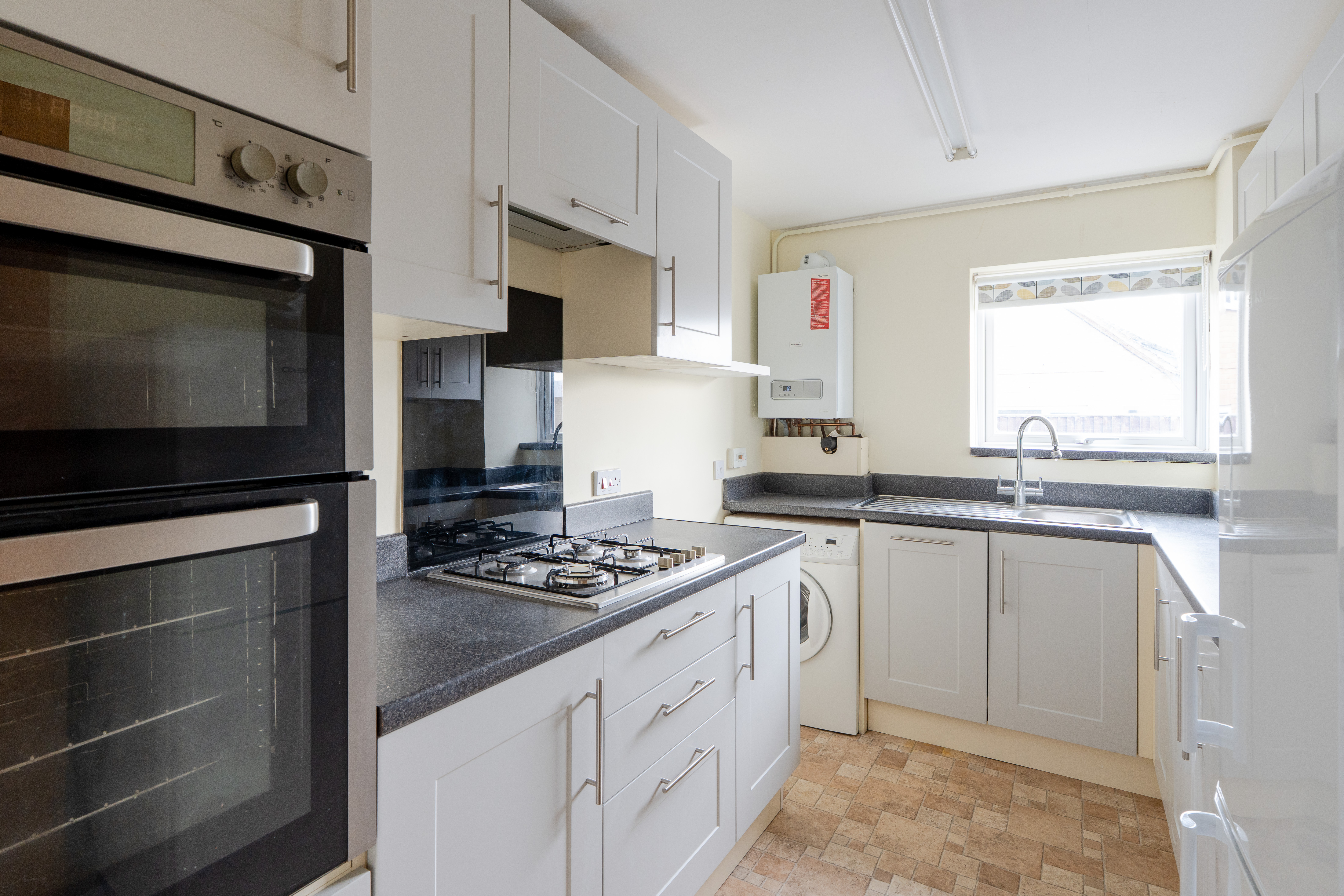 To the rear of the property are two bedrooms, both overlooking the communal rear garden. The principal bedroom benefits from fitted wardrobes. A family bathroom with a shower over the bath, along with two useful storage cupboard off the hallway, completes the accommodation.