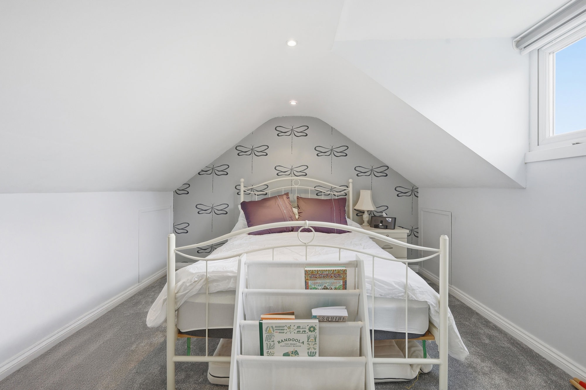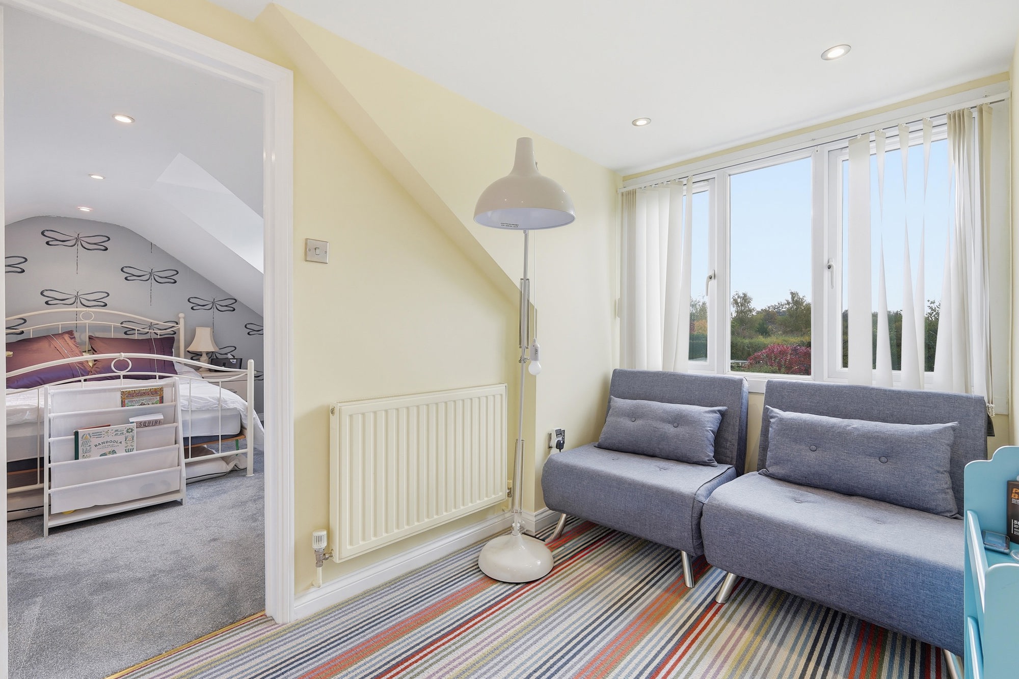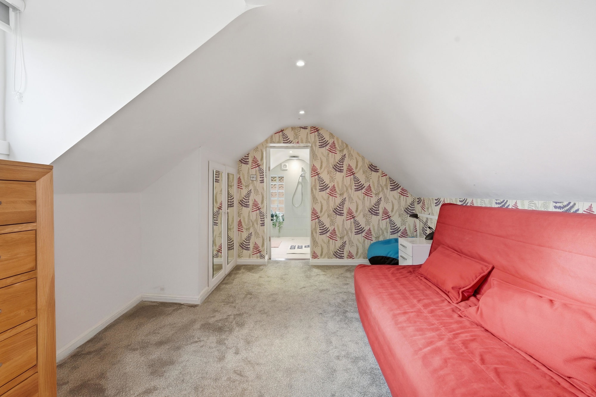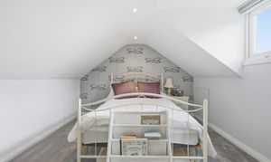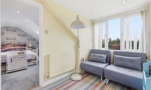 Upstairs there are two further double bedrooms as well as a recently updated contemporary bathroom/wet room and a generous, light-filled landing with picturesque view of the garden. Environmentally conscious buyers will appreciate the air source heating system, and solar panels providing excellent energy efficiency.