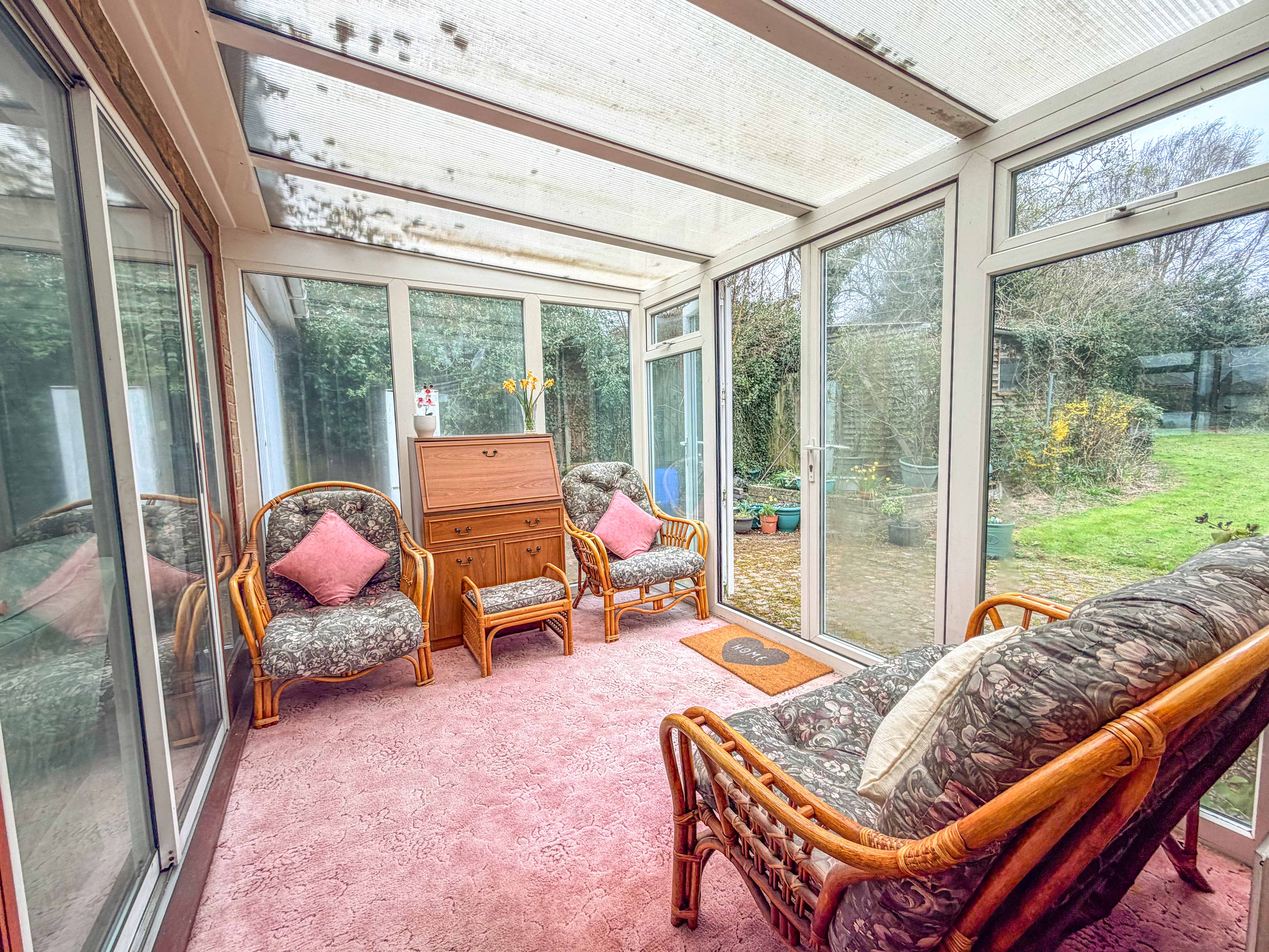 To the rear, a conservatory provides an additional living space, perfectly placed to enjoy the garden outlook. This room offers a quiet retreat and further potential to enhance the connection between the home and its outdoor surroundings.