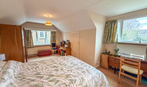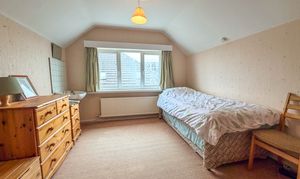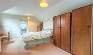 The ground floor accommodation is further enhanced by a spacious double bedroom positioned to the rear, enjoying views over the garden and offering flexibility for a range of uses, whether as a principal bedroom, guest suite or additional reception room if required. This is served by a bathroom, alongside the convenience of a separate guest WC.