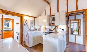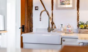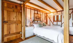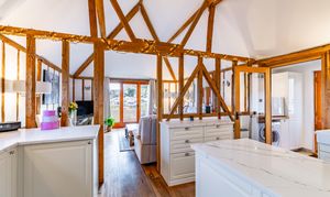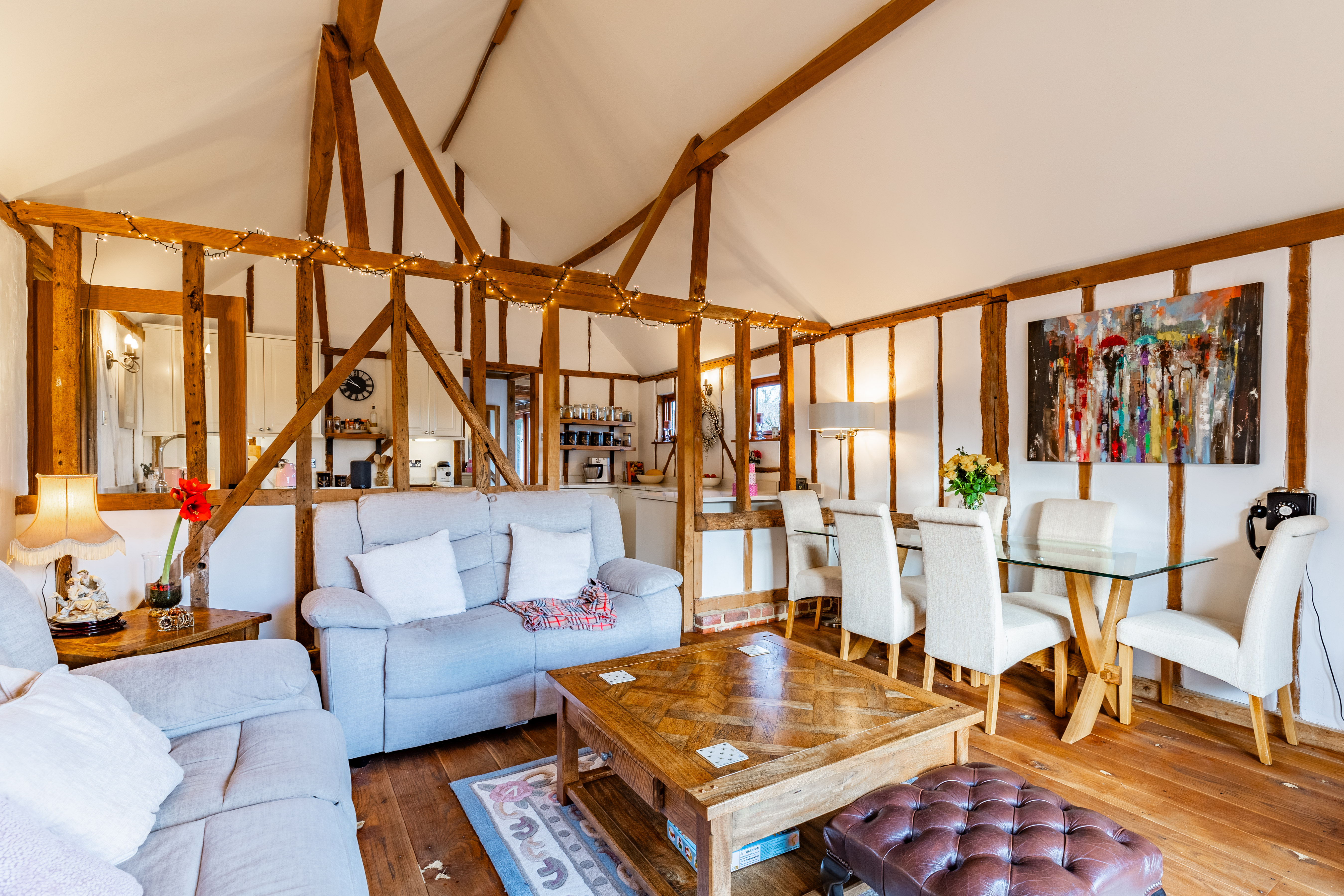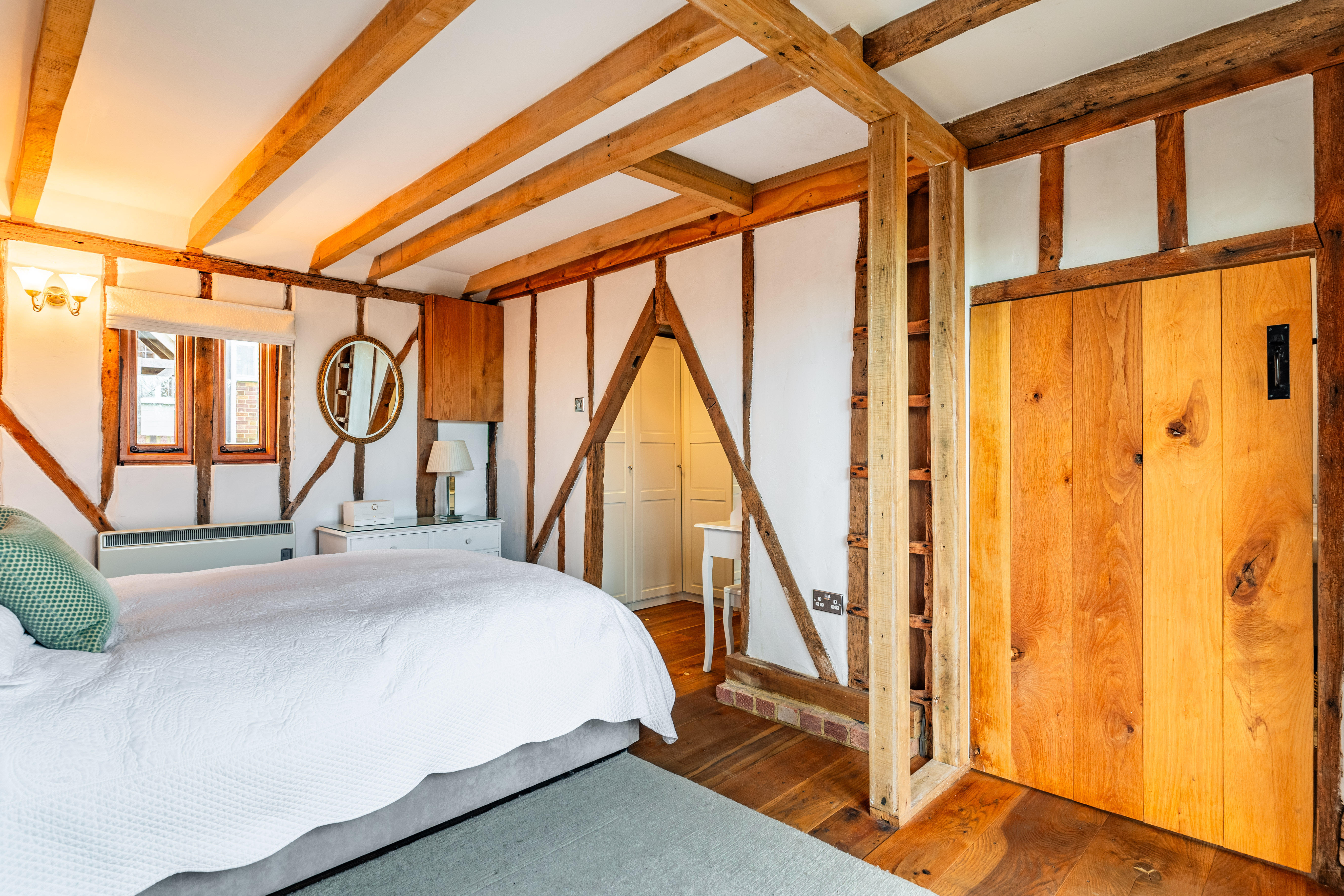Once used to house the falconer’s birds, The Falconry has been thoughtfully renovated and converted into a 2-bedroom annexe. With its own entrance, separate garden, and ample storage space, it’s ideal for extended family, guests, or even as a rental property. The annexe retains its character with solid oak floors, original beams, an original ladder into the loft, and a vaulted ceiling in the main living area.