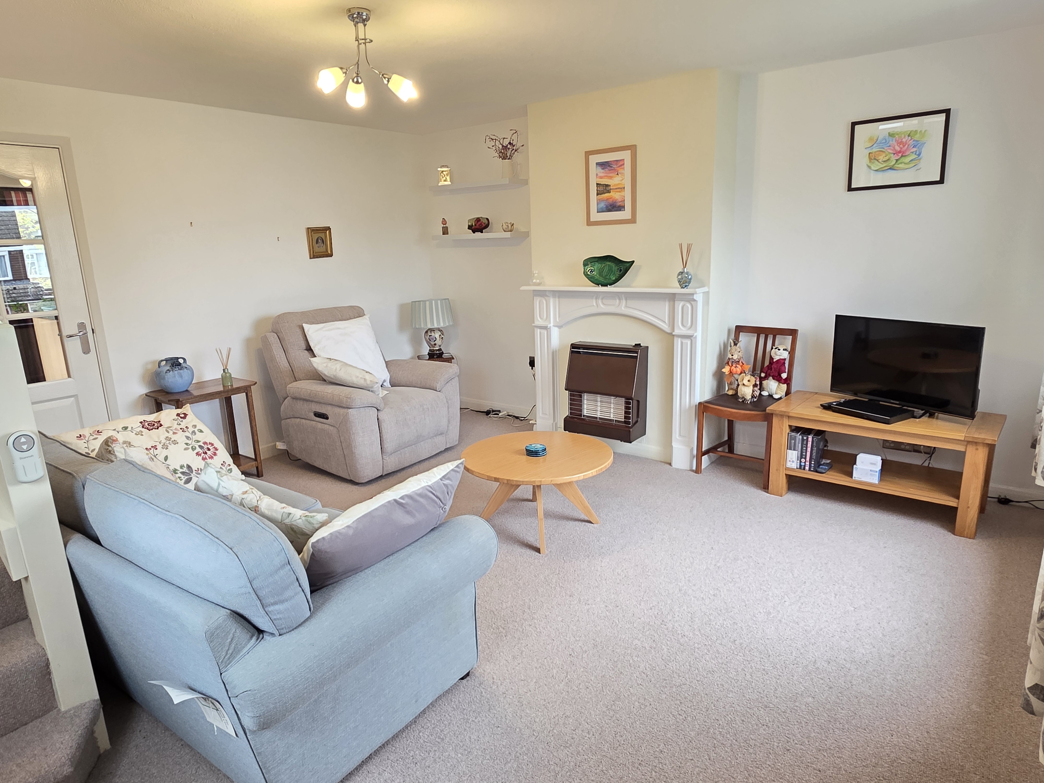 This comprises of carpet flooring, TV connectivity, gas fire place, electric storage heating, stair case leading to the first floor and plus access into the kitchen/diner.