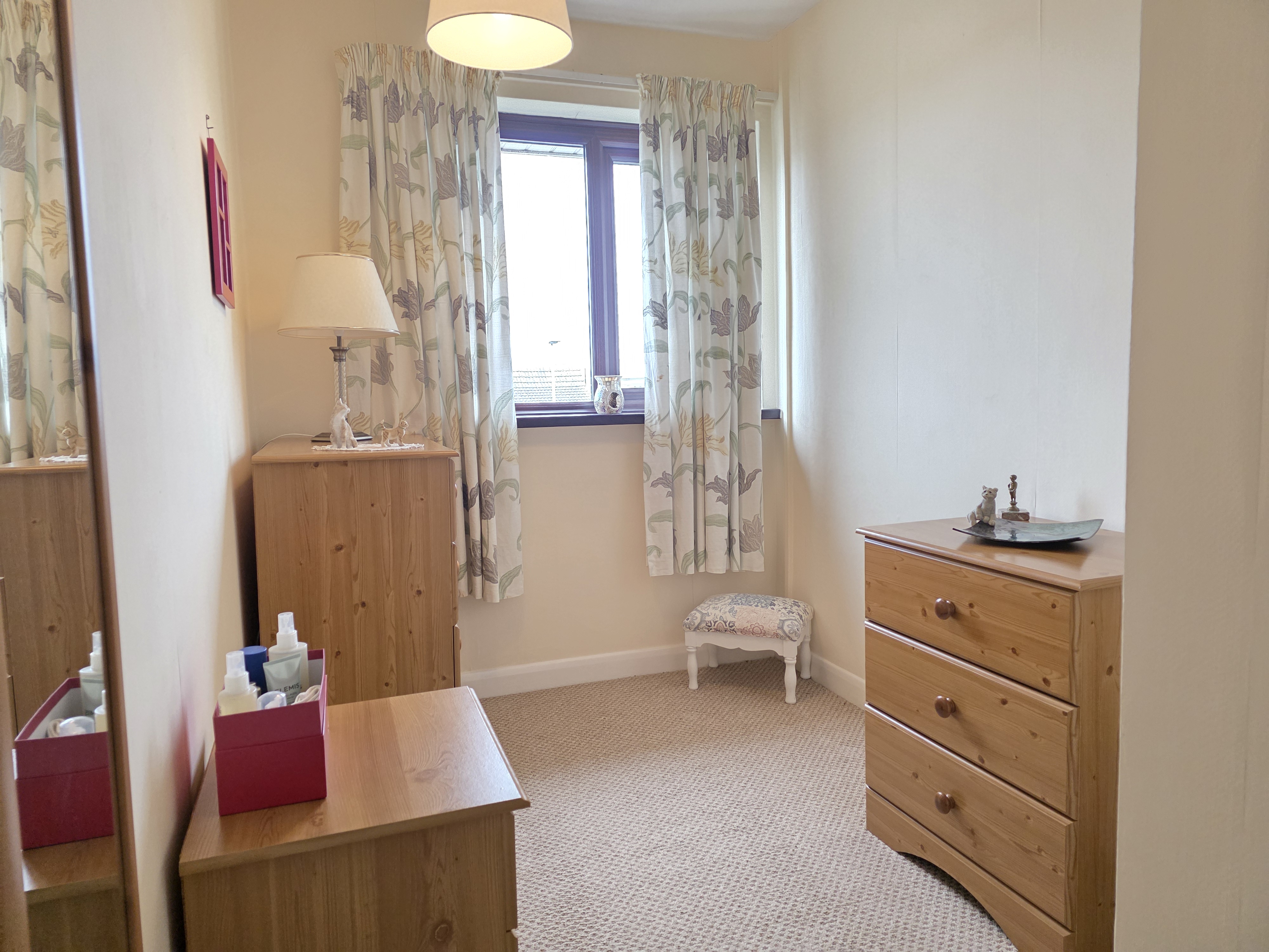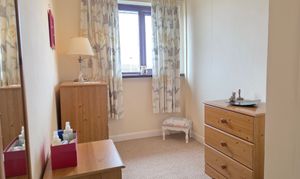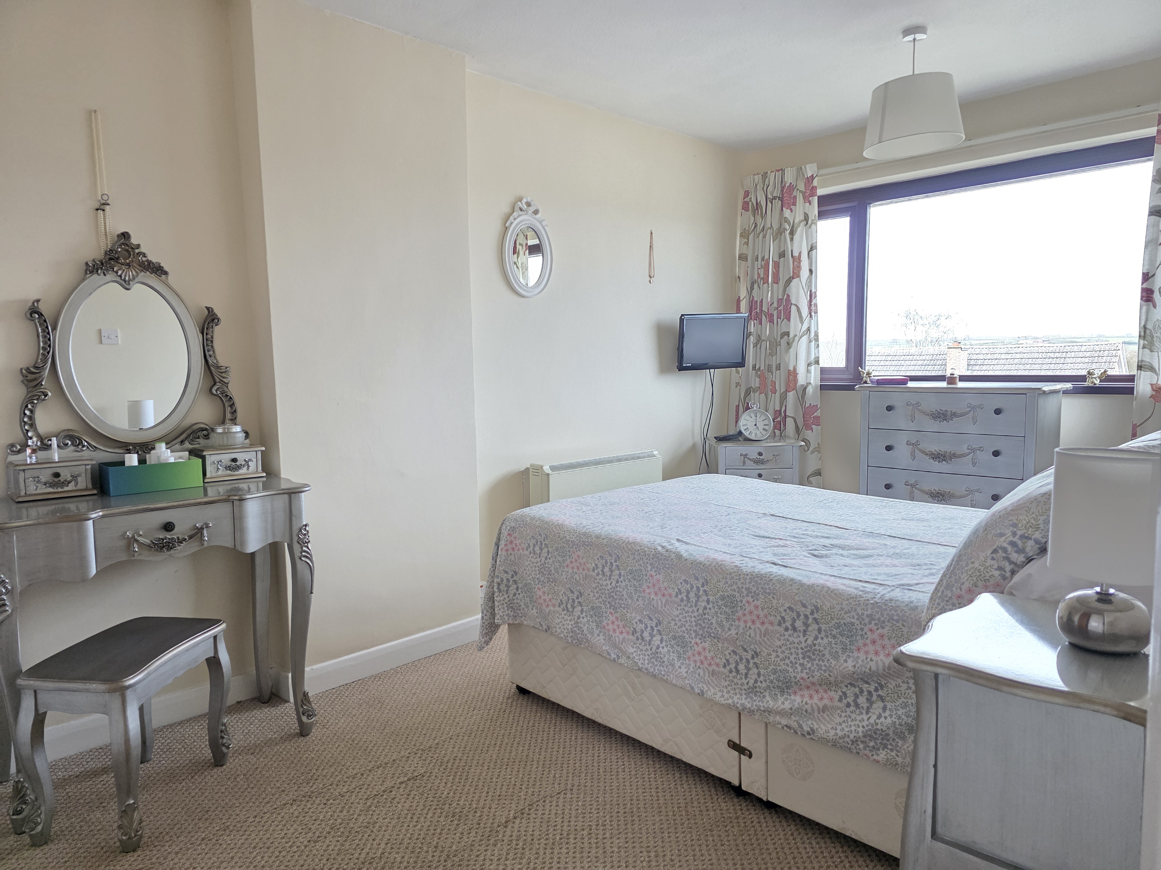 The master bedroom has carpet flooring, electric storage heater, airing cupboard and UPVC double glazed window.