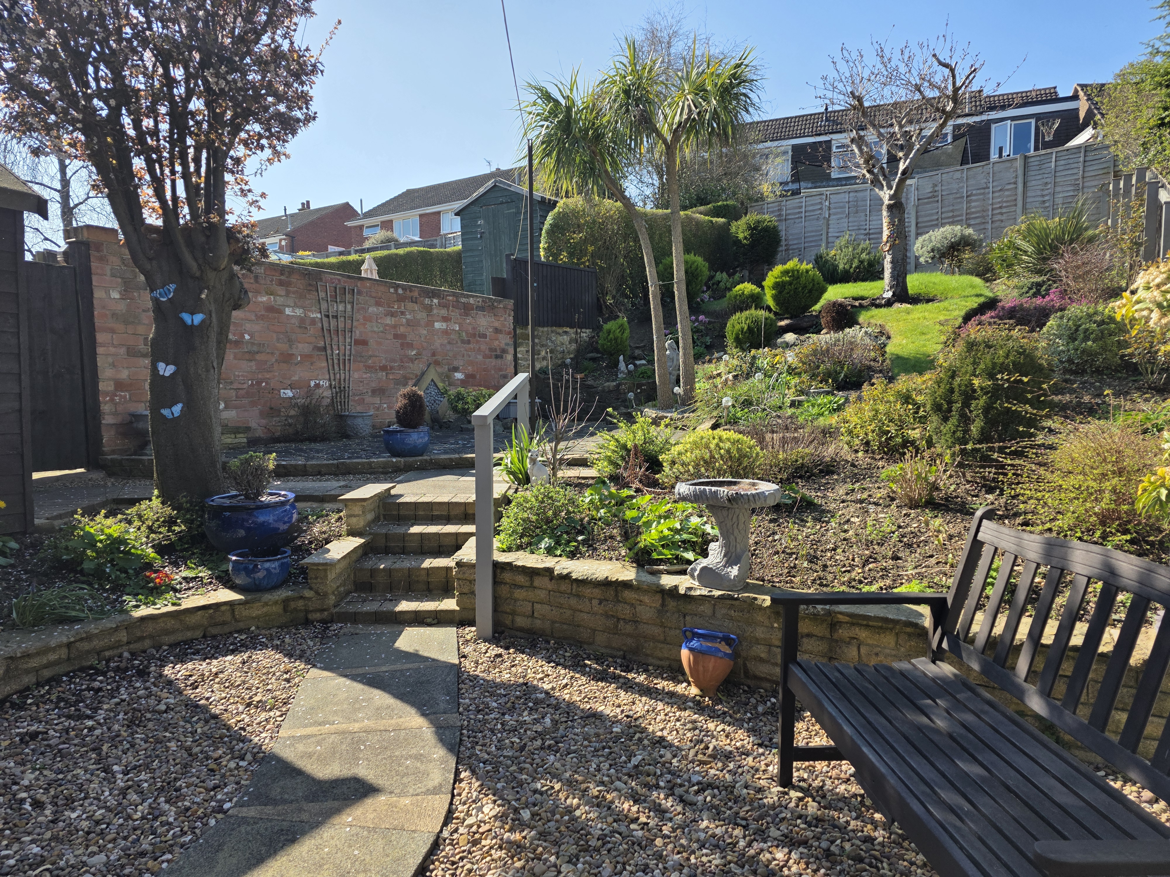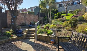 Behind the property is a lovely mature slopping garden consisting of gravel areas, slabbed pathways, shrub areas, crazy paved patio, lawn, mature trees, hedged, fenced and walled boundaries, shed, cold water tap and side gate.