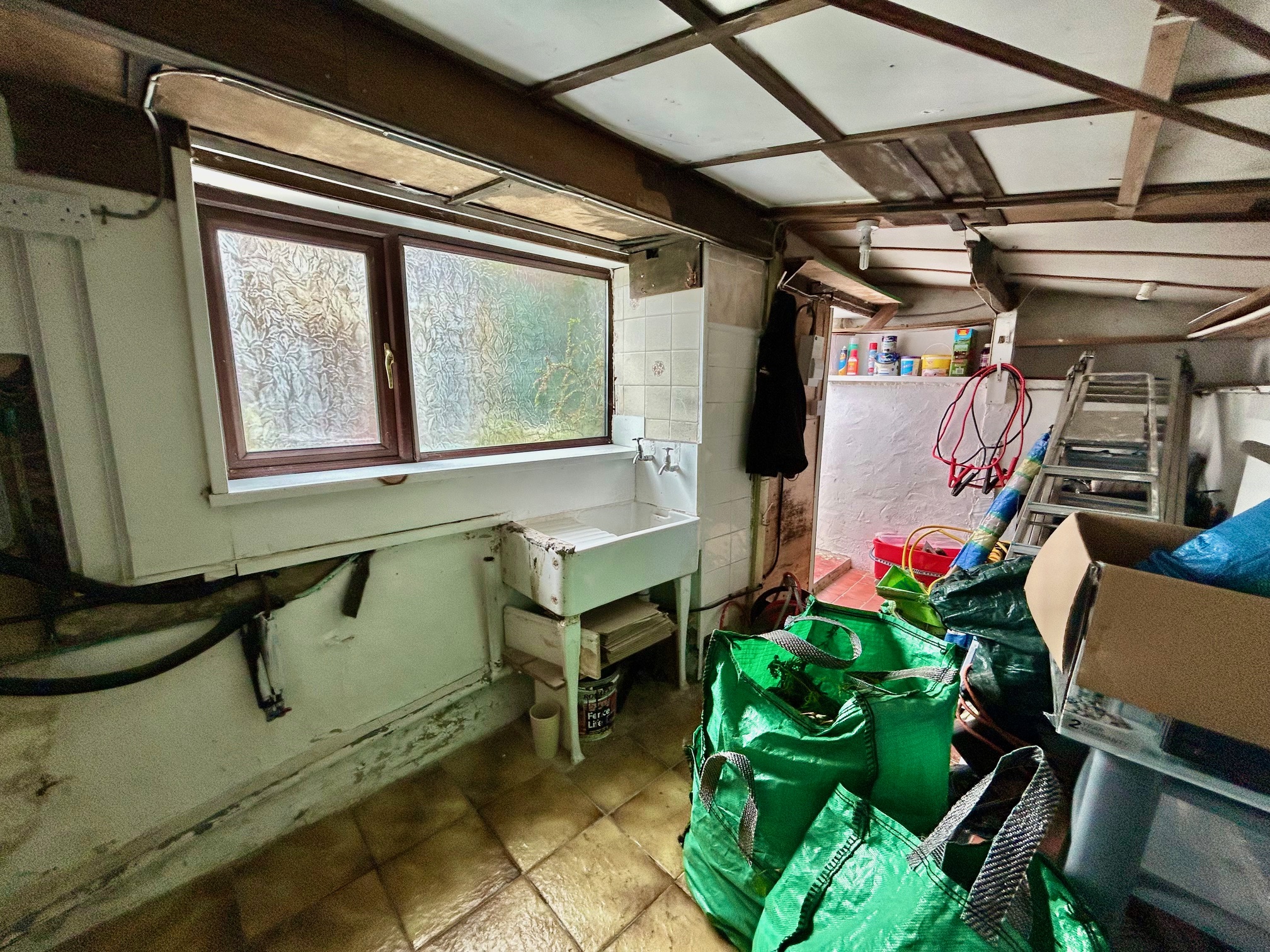A useful addendum room providing with tiled floor and door leading out onto the gardens and patio.