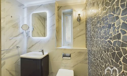 Modernised W.C. features wall mounted hand wash basin with storage, W.C. Tiled floor and walls. Window to rear.