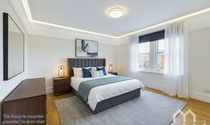 Four piece suite featuring Bidet, W.C. Wall mounted hand wash basin and bath. Feature heated towel rail. Storage cupboard. Tiled walls and floor. Window to rear.