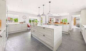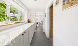 Approached via secure five bar gates to the front, you will find a large shingled driveway providing ample parking for multiple vehicles. The frontage also offers raised planting beds, mature hedging as well as gated access to the side and rear garden. There are then two entrances into the property from the front driveway providing flexibility should a new purchaser wish to create an annexe within the property itself.