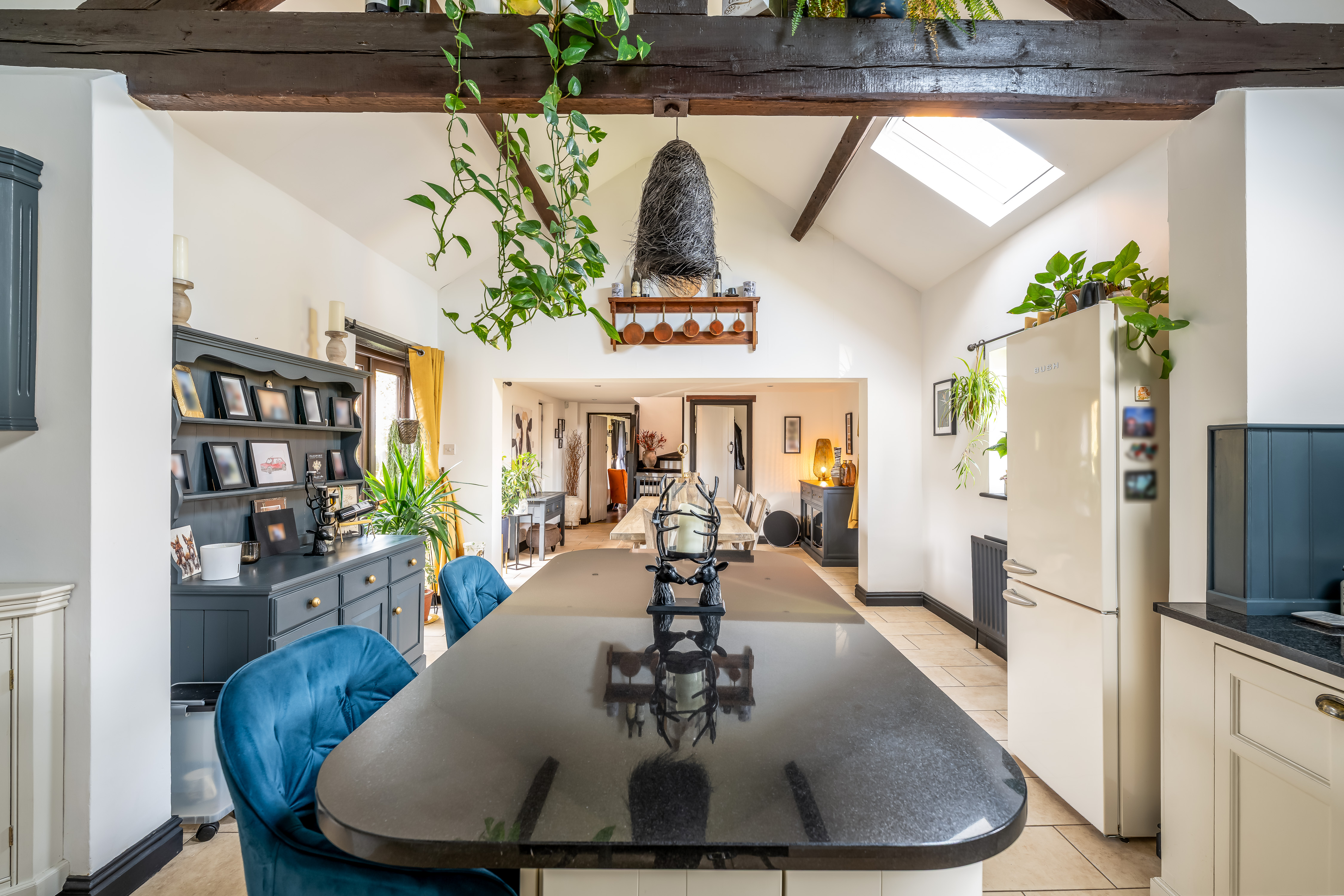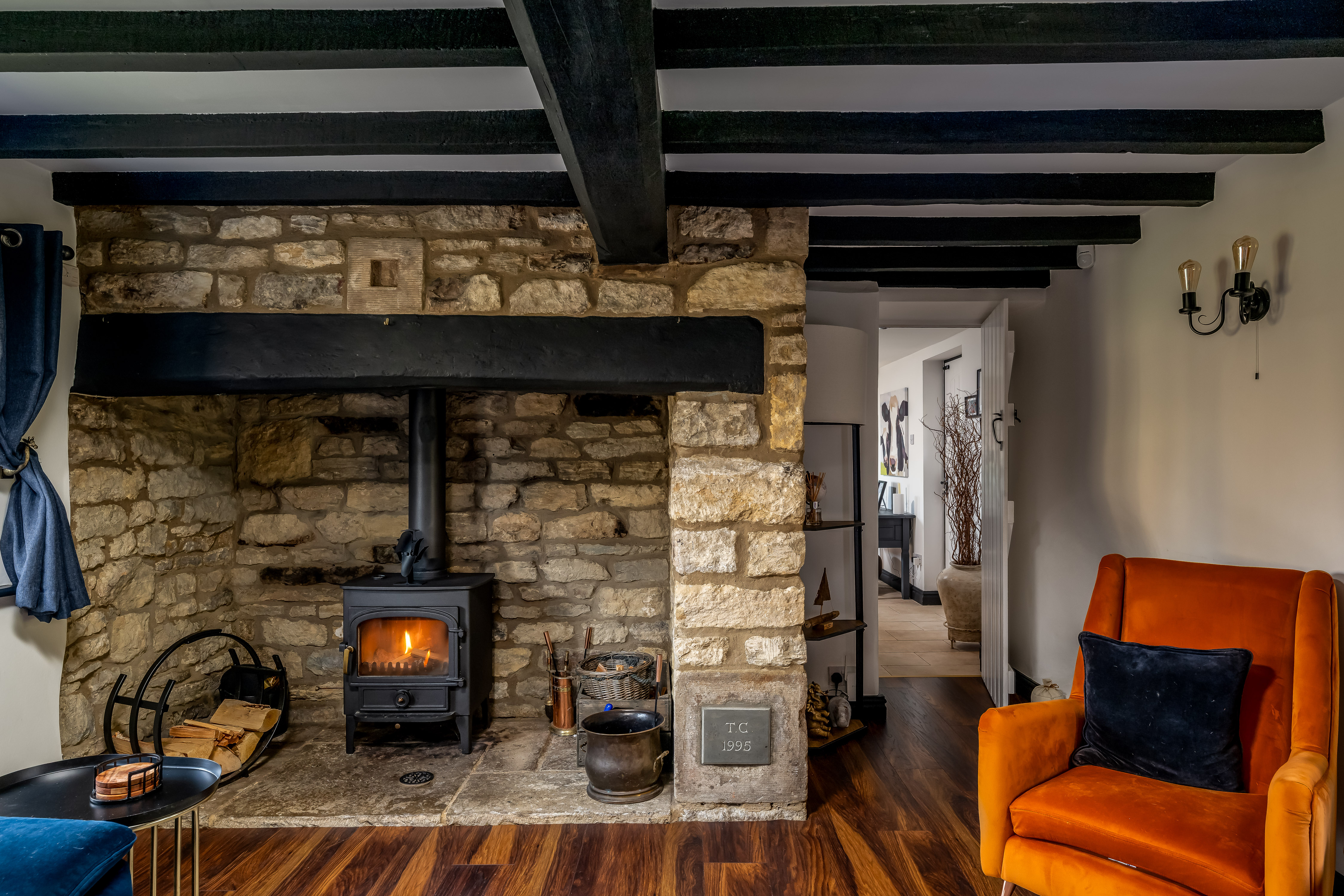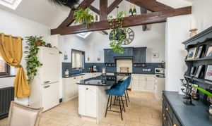 The property effortlessly combines period features with contemporary styling, with highlights including vaulted ceilings, exposed beams, stonework and feature fireplaces, all showcased throughout the home.