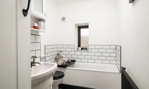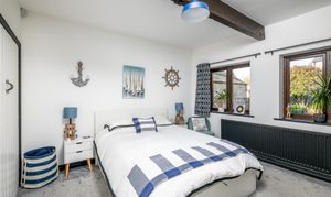 To the first floor, the quality continues with two further double bedrooms, both individually designed and benefiting from their own modern en-suite bathrooms, creating private and comfortable accommodation with characterful features and vaulted ceilings.
