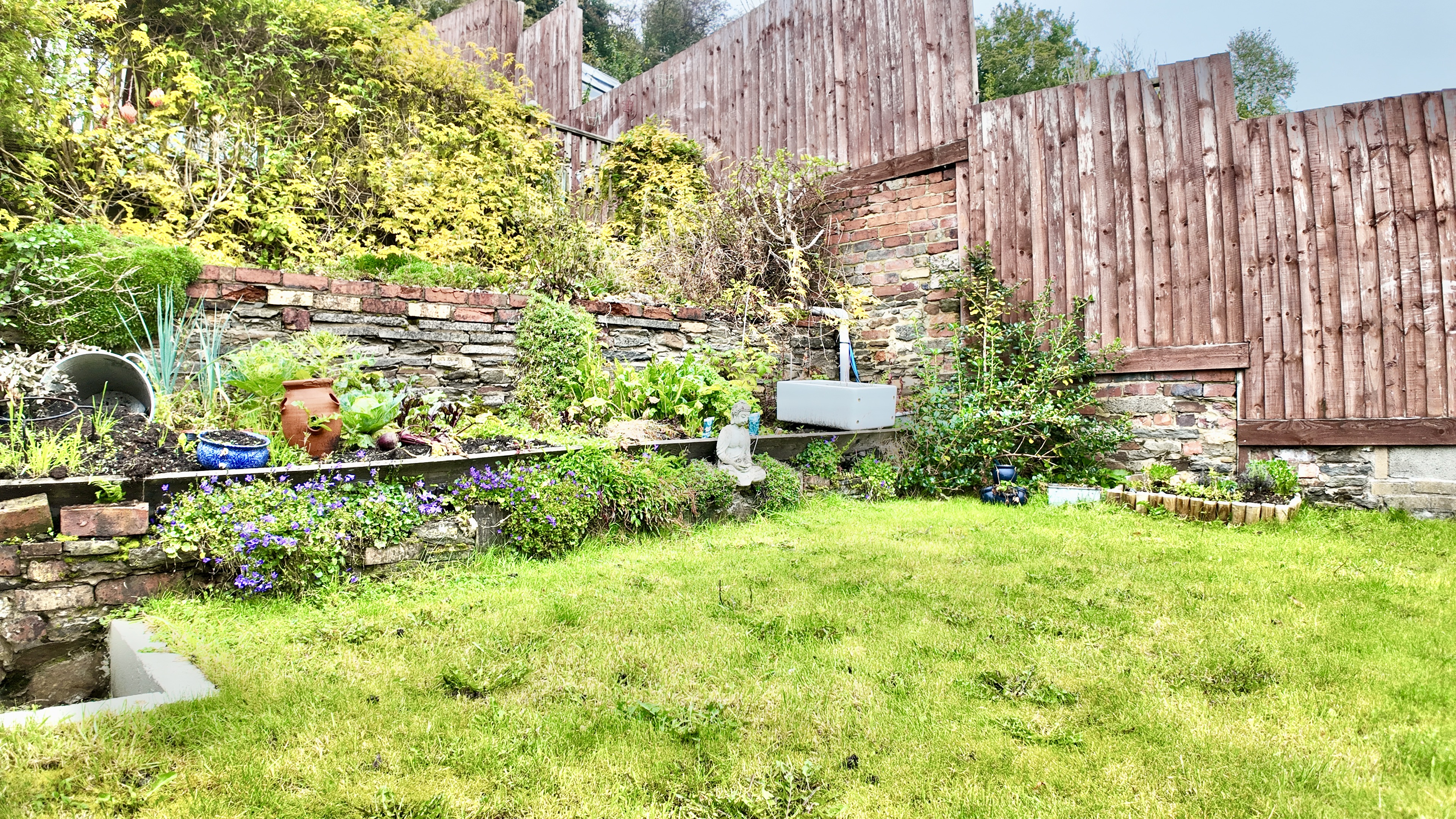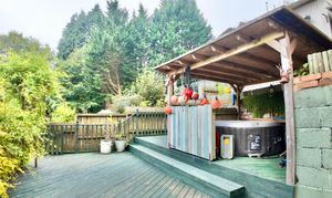 - Tiered rear garden with patio seating area, lawns, veg patch, hot tub area and shed to the rear