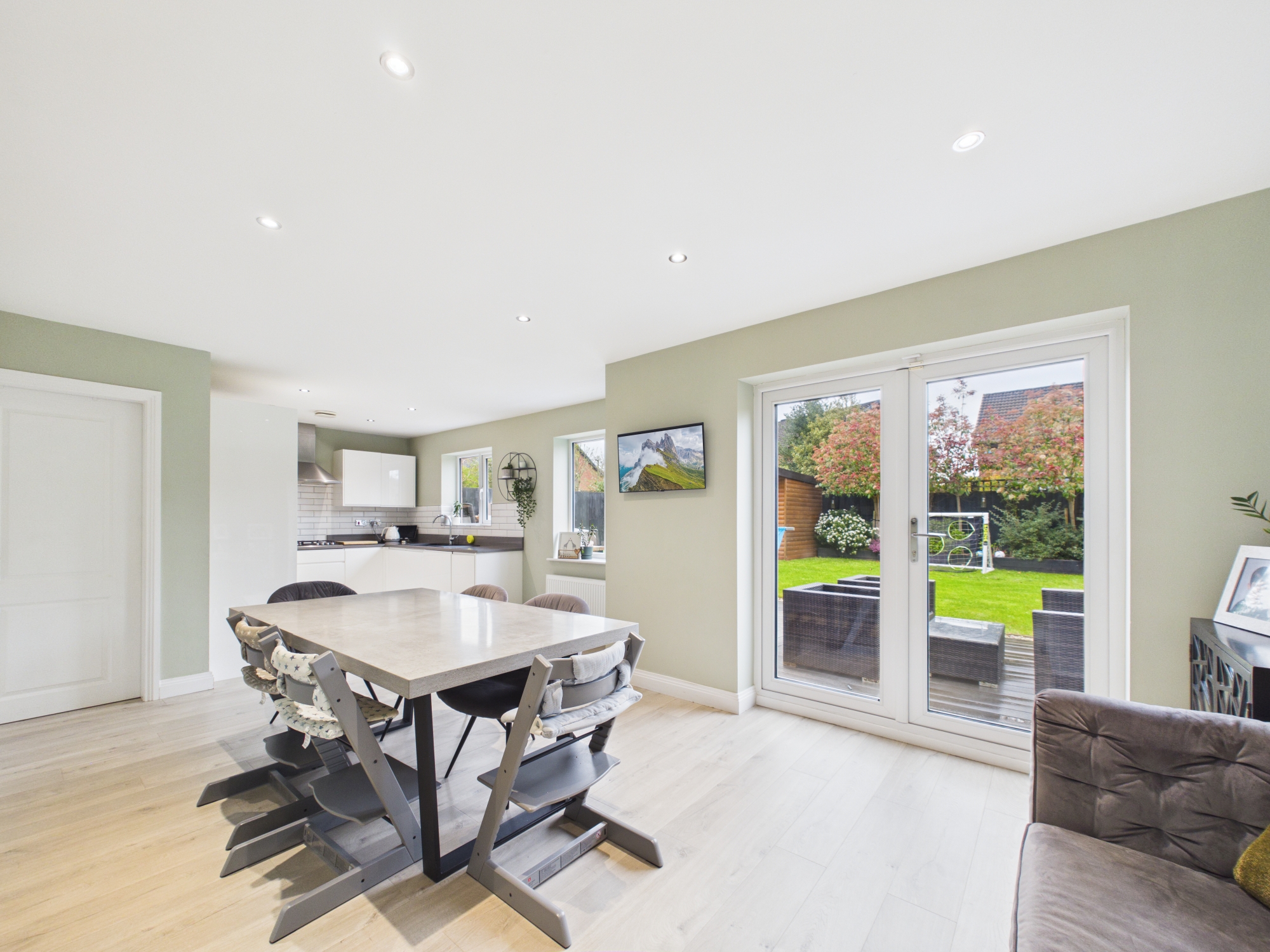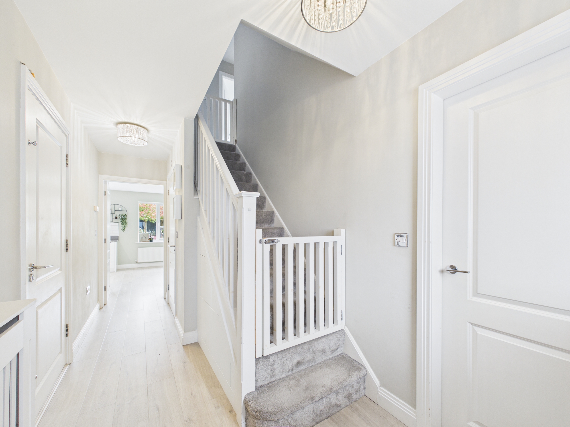 IMMACULATELY PRESENTED and situated in a sought after residential area, this STUNNING FOUR BED DETACHED house offers the perfect blend of contemporary style and family-friendly living. Upon entering, you are welcomed by a spacious ENTANCE HALLWAY that sets the tone for the rest of the home. The large, light and airy LOUNGE provides an inviting space for relaxation or entertaining, while the heart of the home is the MODERN open plan KITCHEN/FAMILY ROOM, complete with a dedicated DINING AREA - ideal for both every-day meals and special gatherings. A practical UTILITY ROOM and downstairs CLOAKS/W.C add to the property’s convenience. Upstairs, the impressive MASTER BEDROOM boasts fitted wardrobes a luxurious EN-SUITE shower room, while three further DOUBLE BEDROOMS offer ample space for family or guests. The contemporary FAMILY BATHROOM is finished to a high standard, ensuring comfort and style throughout. This exceptional home is within WALKING DISTANCE of local shops and amenities, and falls within the CATCHMENT AREA for popular schools, making it perfect for families and professionals alike. The INTEGRAL GARAGE, with an internal door to the property, enhances both storage facilities and convenience, while the DRIVEWAY provides ample off-road parking.