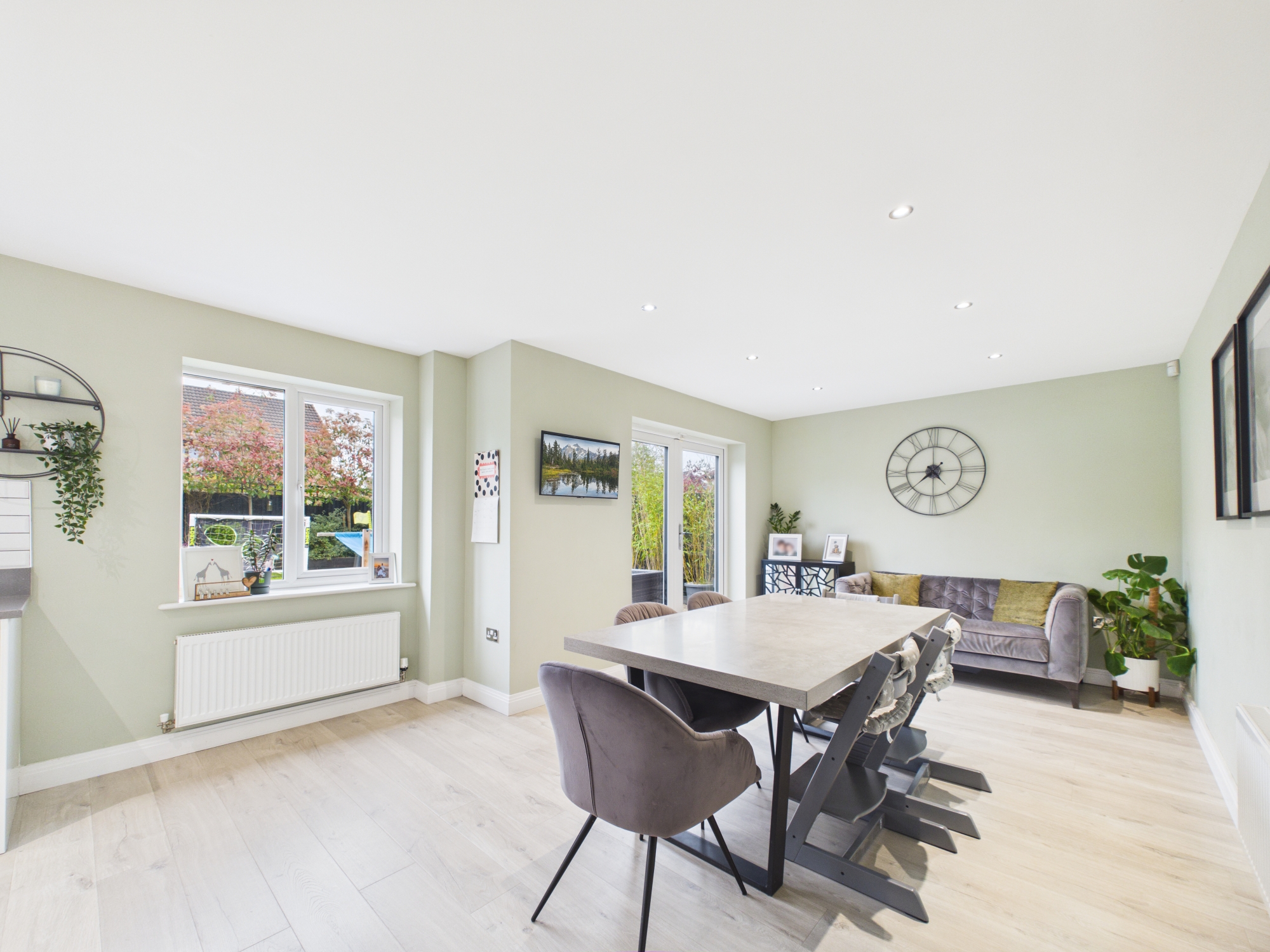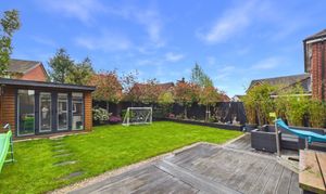 The outdoor spaces are equally impressive, designed for both relaxation and entertaining. To the rear, a GENEROUS GARDEN is mainly laid to lawn, providing a safe and private haven for children to play. The spacious decking area is perfect for outdoor enjoyment, whether hosting summer barbeques or simply unwinding at the end of the day. The stylish GARDEN ROOM offers a versatile space for a HOME OFFICE, GYM, or additional entertaining area, seamlessly merging indoor and outdoor living. The front GARDEN is attractively laid to lawn with established borders, creating a welcoming first impression and enhancing the home’s KERB APPEAL. The integral garage features an up and over door, power, and lighting, and can be accessed directly from the house for added convenience. This beautiful property truly offers a lifestyle of comfort, convenience, and contemporary elegance, in a location that is both peaceful and perfectly positioned for local amenities and transport links.
