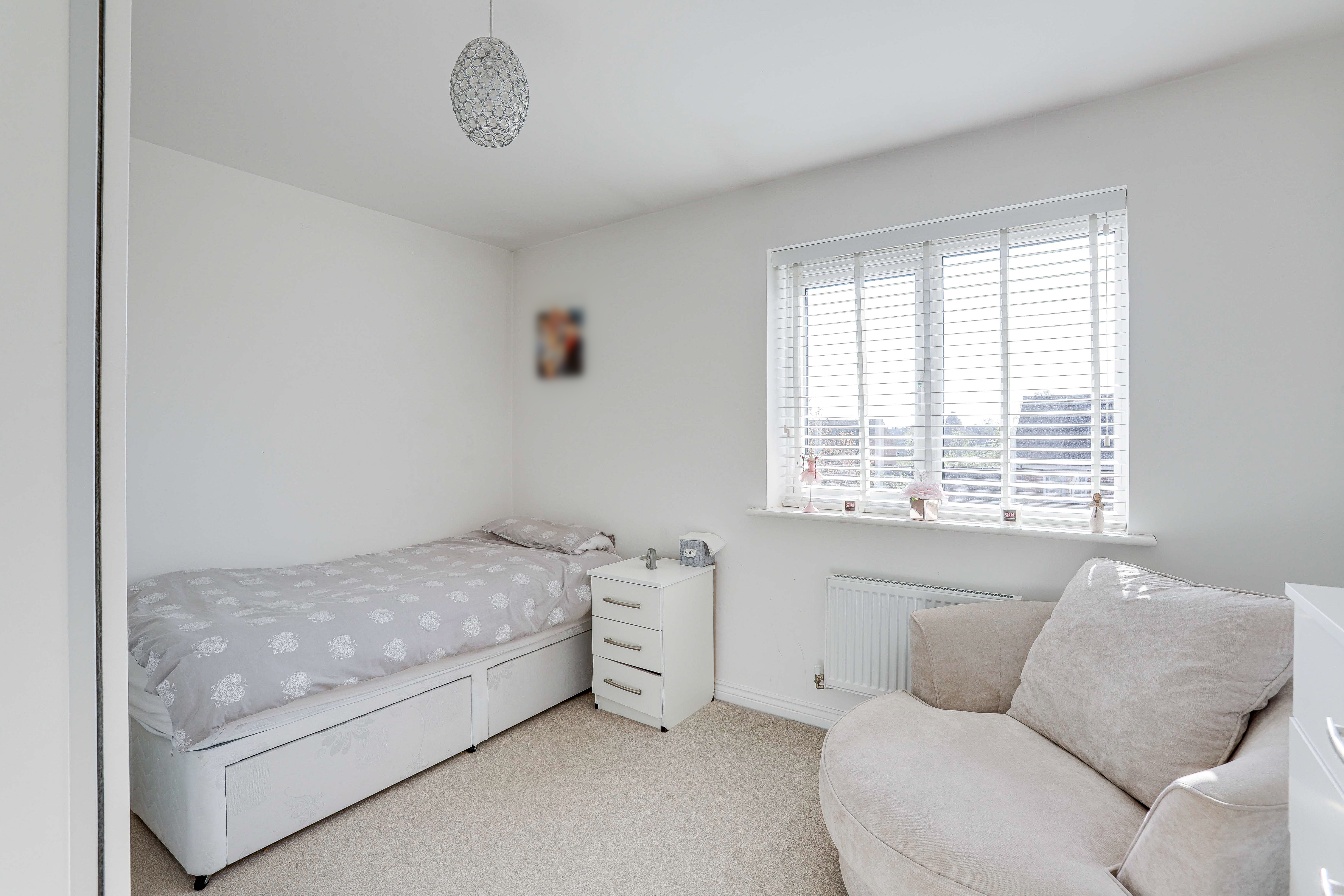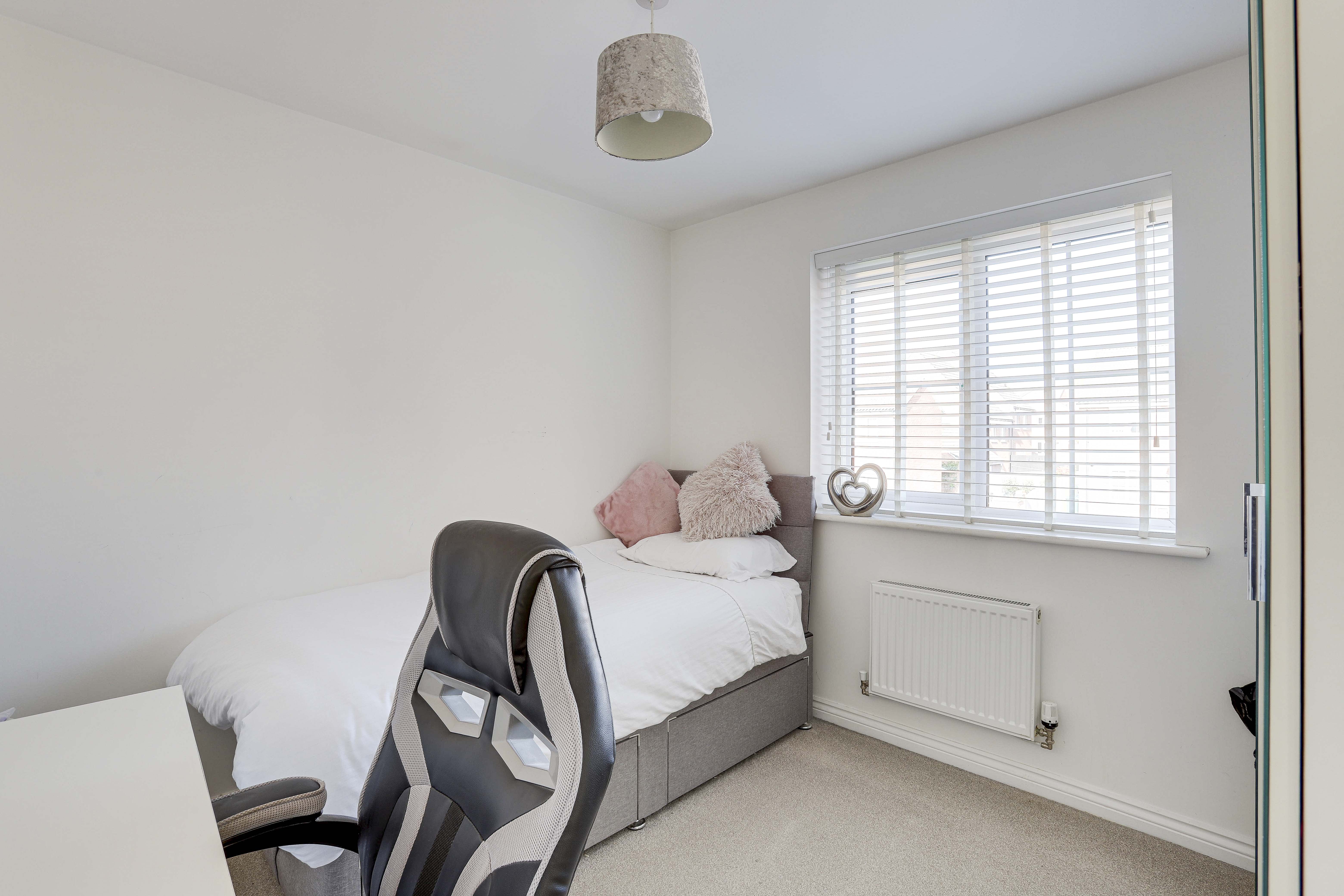 The fourth bedroom has carpeted flooring, a radiator, and a UPVC double-glazed window to the front elevation.