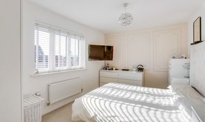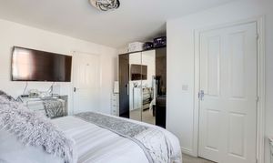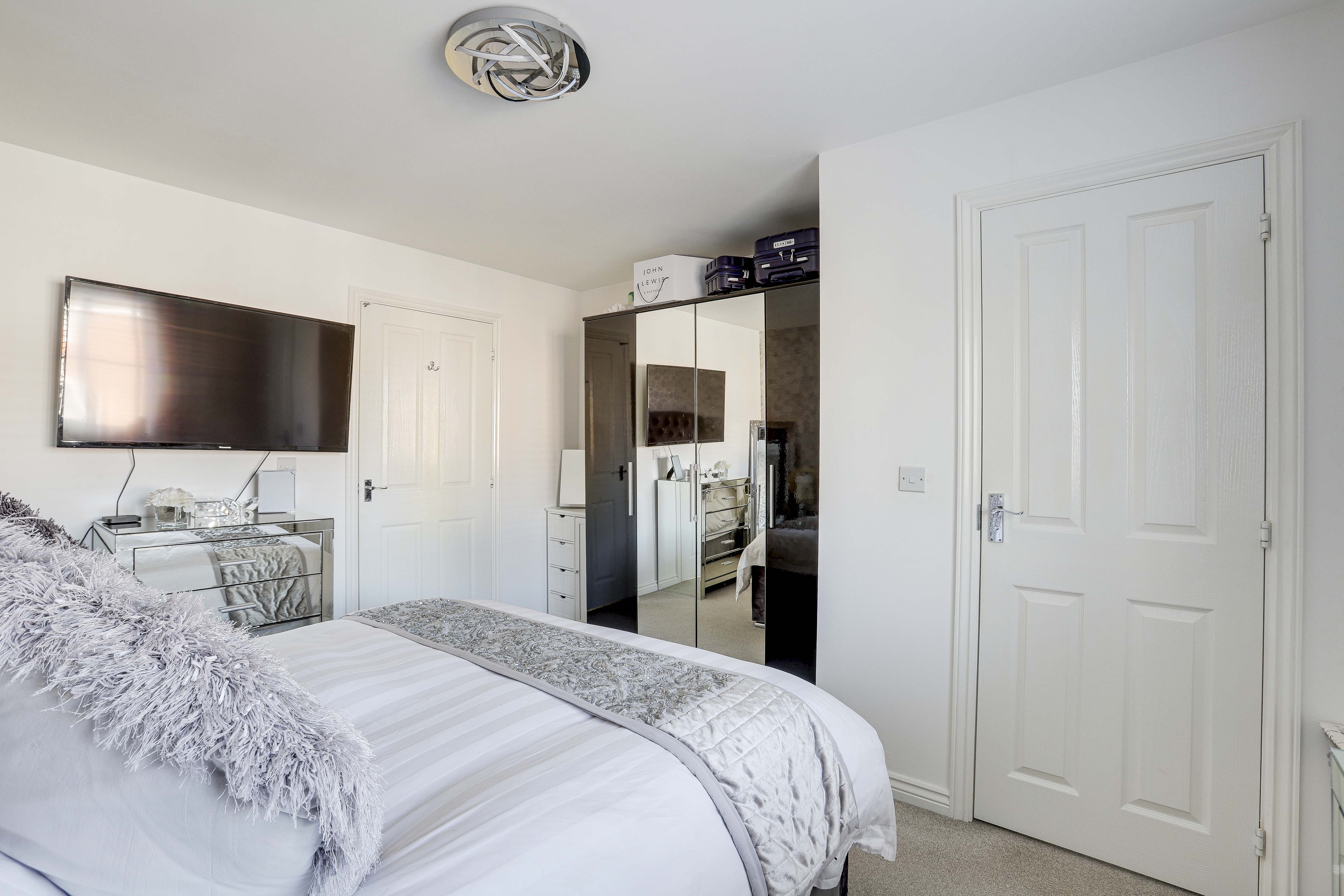 The second bedroom has carpeted flooring, a radiator, fitted Sharps wardrobes, and a UPVC double-glazed window to the rear elevation.