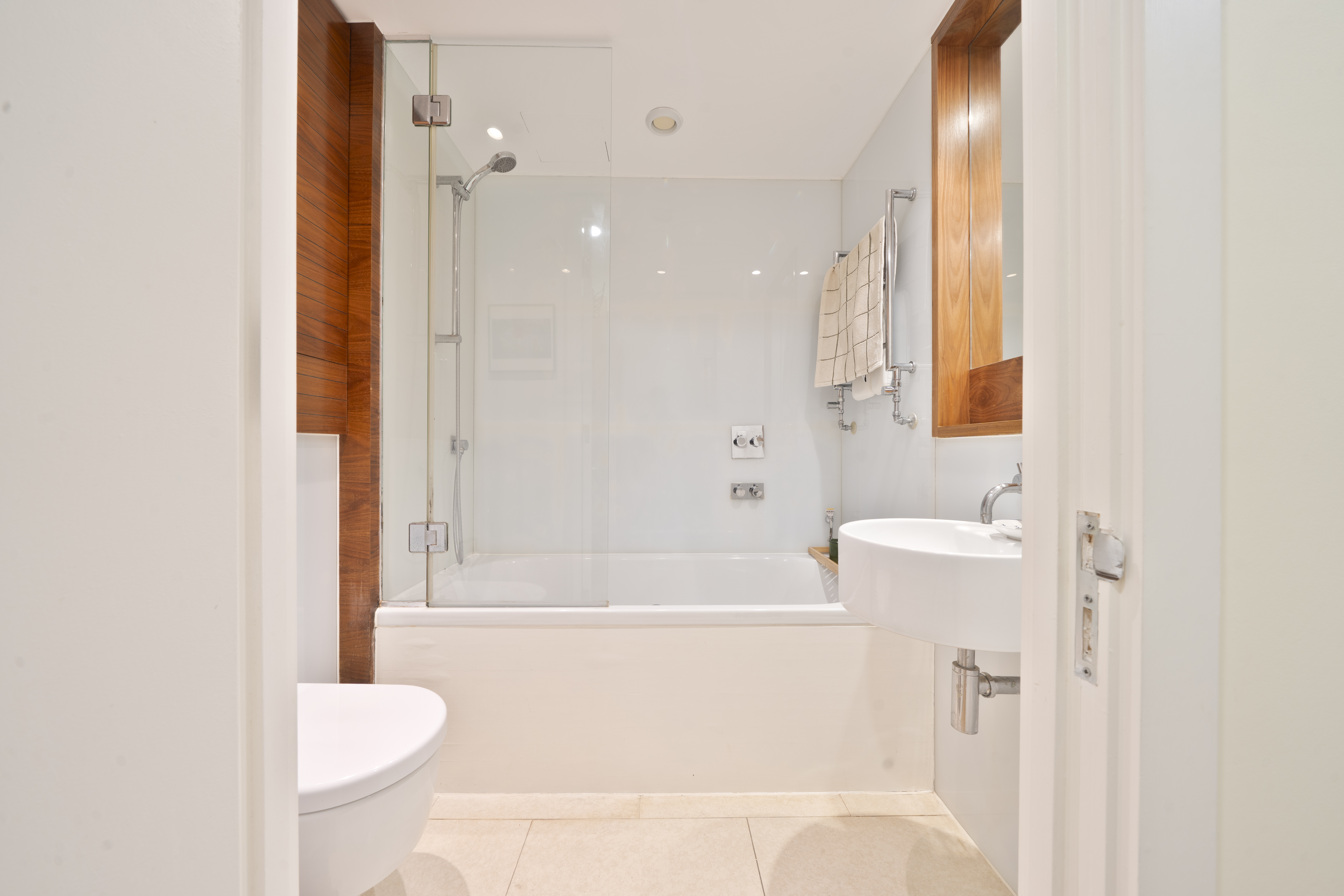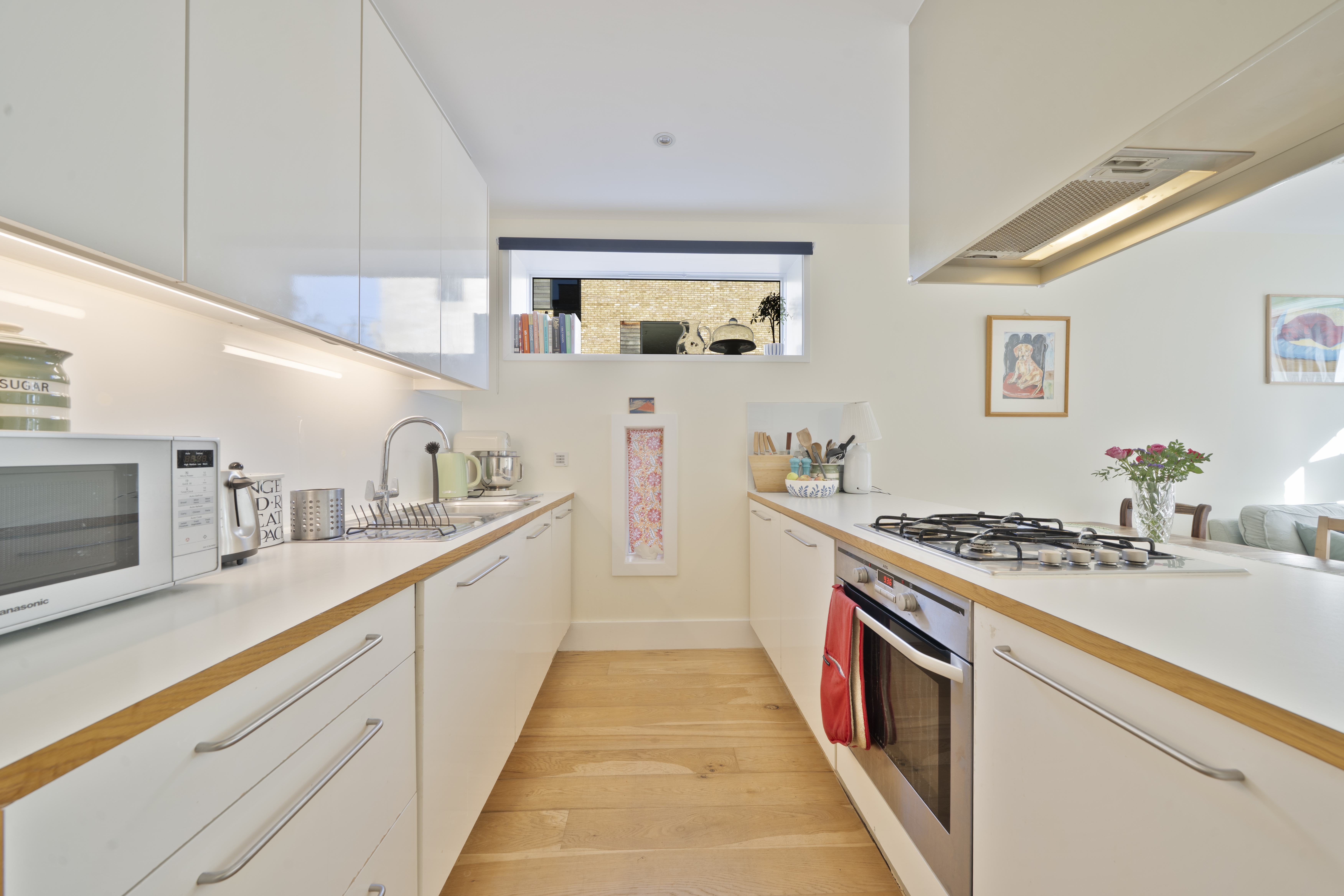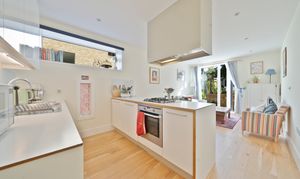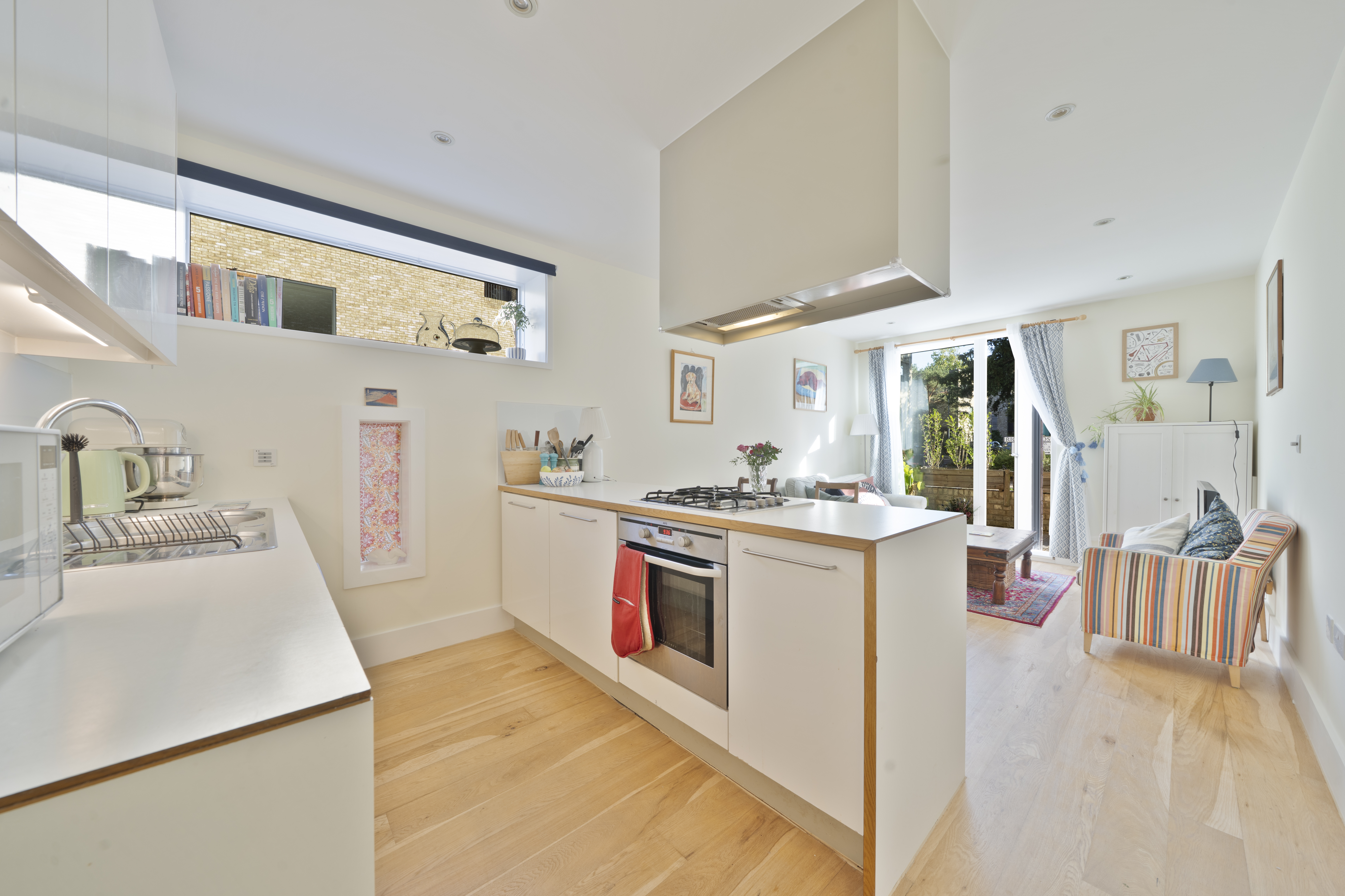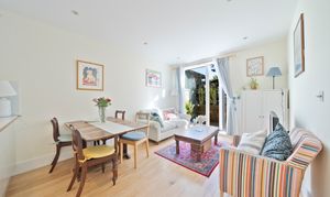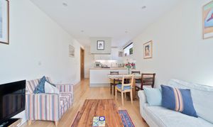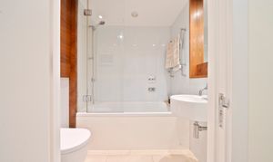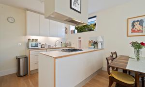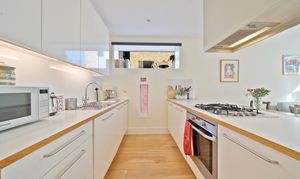 The apartment itself is presented in excellent decorative order and features a bright open-plan kitchen and living space with a sleek contemporary design and integrated appliances. A generous double bedroom with fitted wardrobes is complemented by a luxury bathroom with stylish fittings, while oak flooring and underfloor heating throughout add to the modern finish. With a private southerly-facing sun terrace, double glazed windows, and a well-connected location, this home combines comfort, convenience and a high-quality specification throughout.