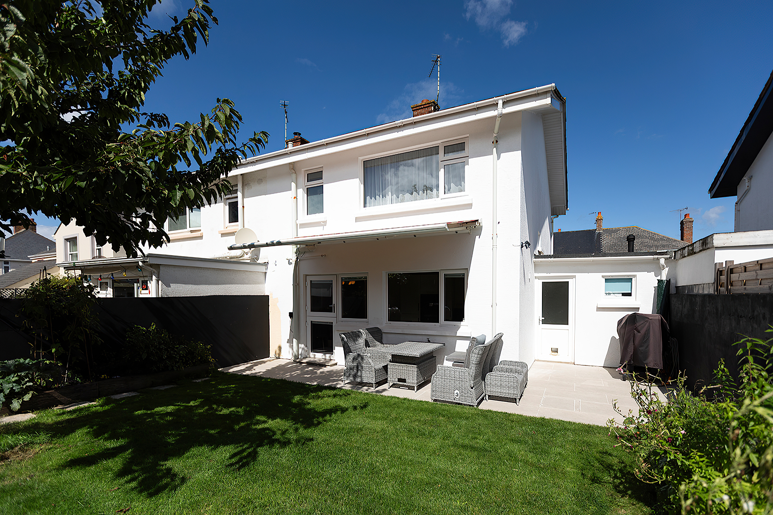 Gorgeous south facing garden to the rear of the property which is mainly laid to lawn with plant borders, vegetable patch and a Cherry tree "for those spring time blossoms"