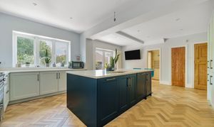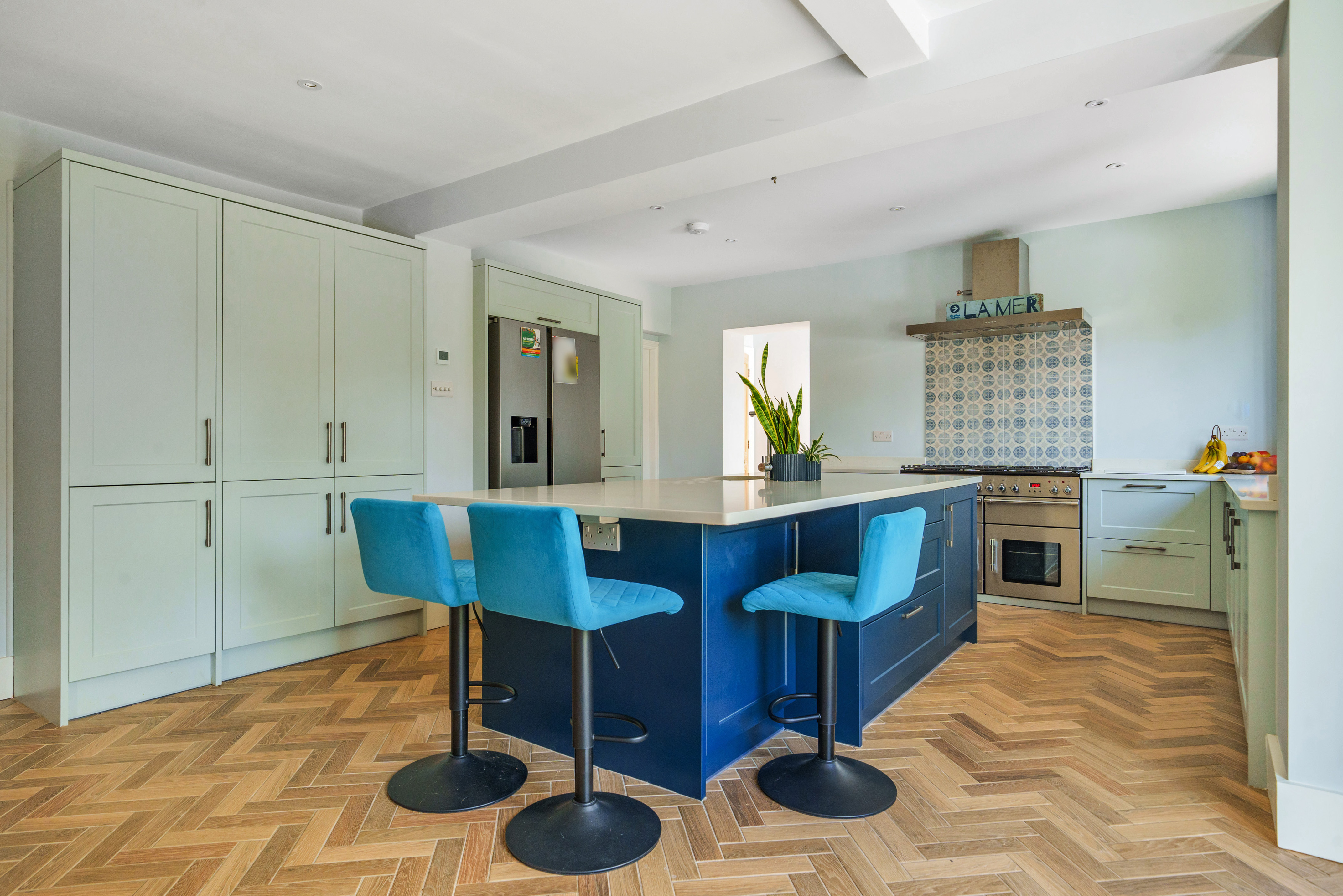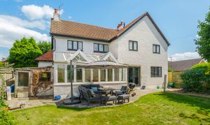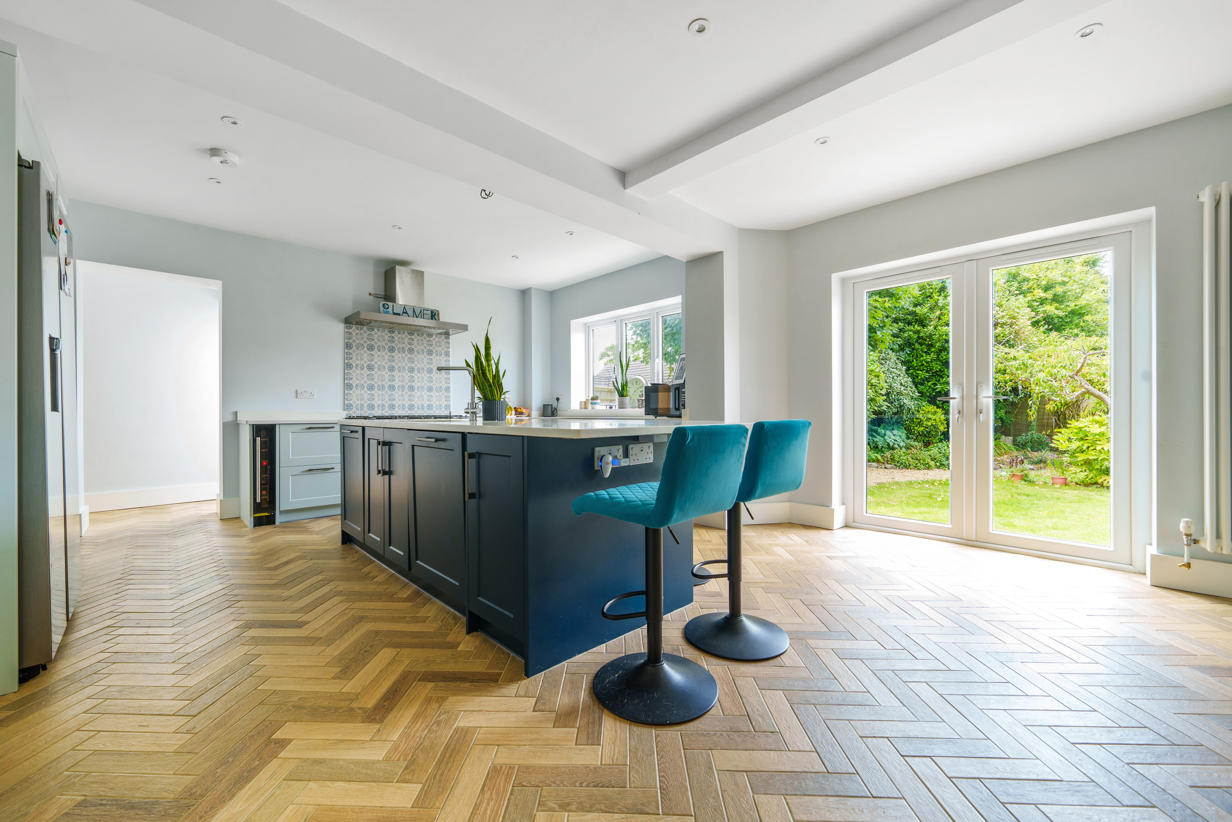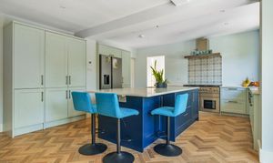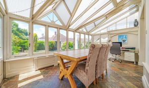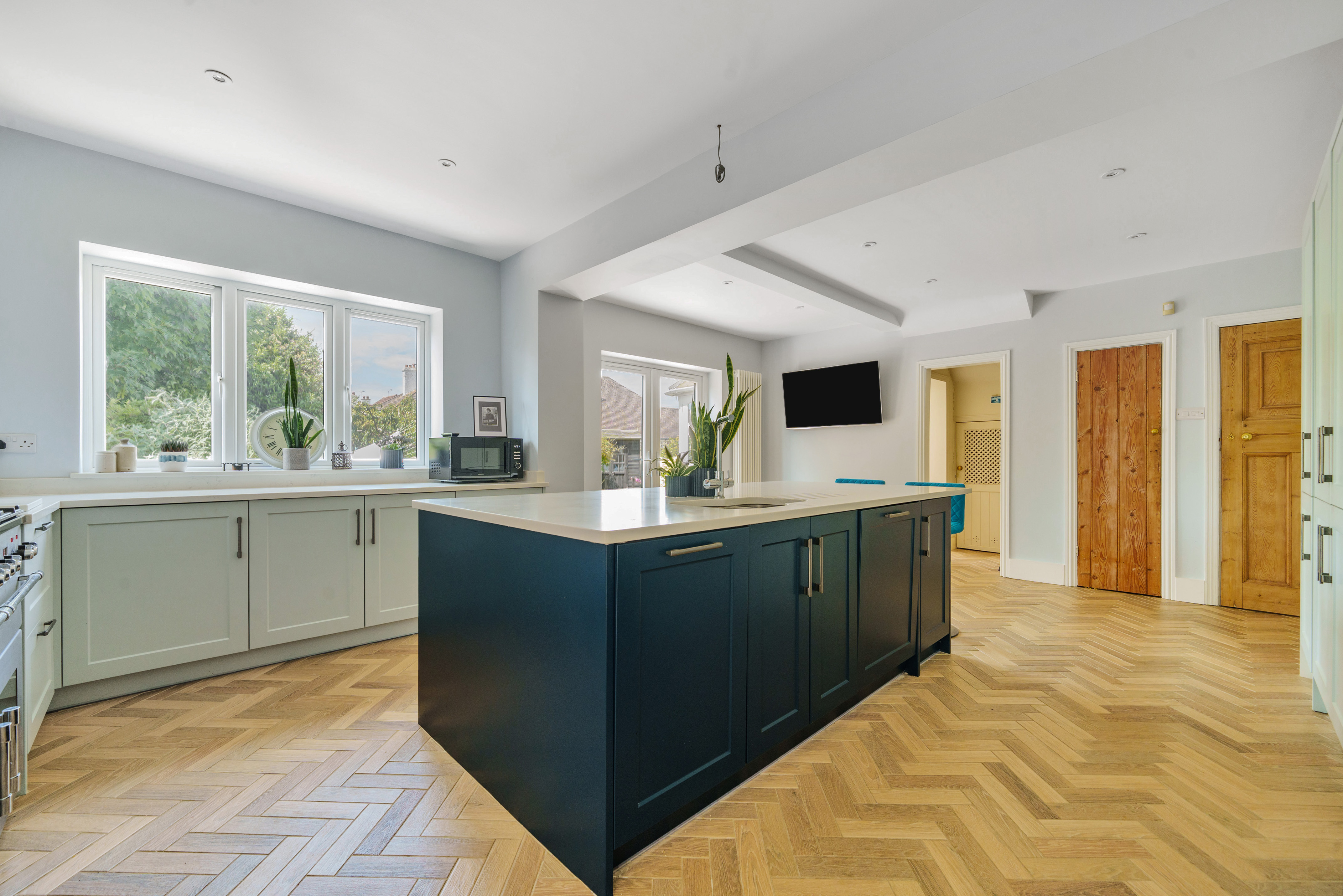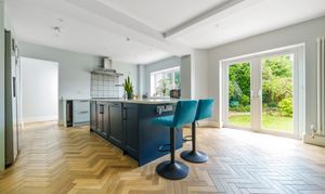 On the ground floor enjoy cosy evenings in the large Lounge, complete with a working log burner, perfect for relaxing with family and friends. A second Reception room offers flexibility as a Dining or Family room, perfectly adaptable to your needs. The charming Conservatory provides natural light and offers views and access to the serene rear Garden. The beautifully renovated Kitchen boasts a feature island, underfloor heating, and modern appliances. A downstairs Cloakroom can be found for added convenience.