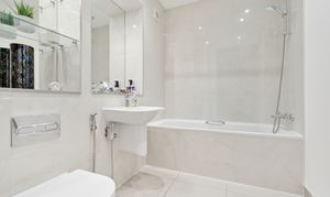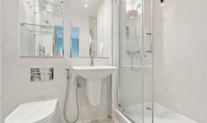 The property features three generous bedrooms, enhanced by floor to ceiling windows that flood the space with natural light. Each of the three luxurious bathrooms is finished to a high standard with premium fittings throughout.
