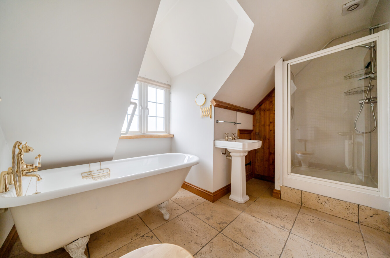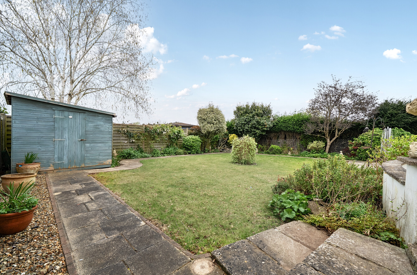 The mature rear garden is fully enclosed and provides ample space for relaxation and entertaining, along with attractive views.