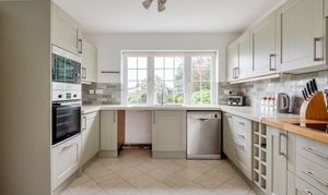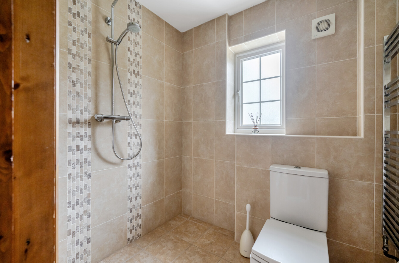Upon entering, you are welcomed by a generous entrance hall that leads to three well-proportioned reception rooms. The main living room is a particularly inviting space, featuring double doors that open to the rear garden (offering lovely views) and a striking fireplace with a woodburning stove, creating a cosy focal point for relaxing or entertaining. The second reception room at the rear of the property, provides a light-filled retreat and would also serve well as a second sitting room. For those working from home or needing additional sleeping space, the third reception room is ideal as a dedicated study or could easily be used as a fourth bedroom if required. The modern kitchen-breakfast room is well equipped electric hob, fitted oven and microwave, and offers ample space for appliances, making it a practical hub for family meals or casual gatherings. A stylish downstairs shower room adds further convenience for guests or busy households.