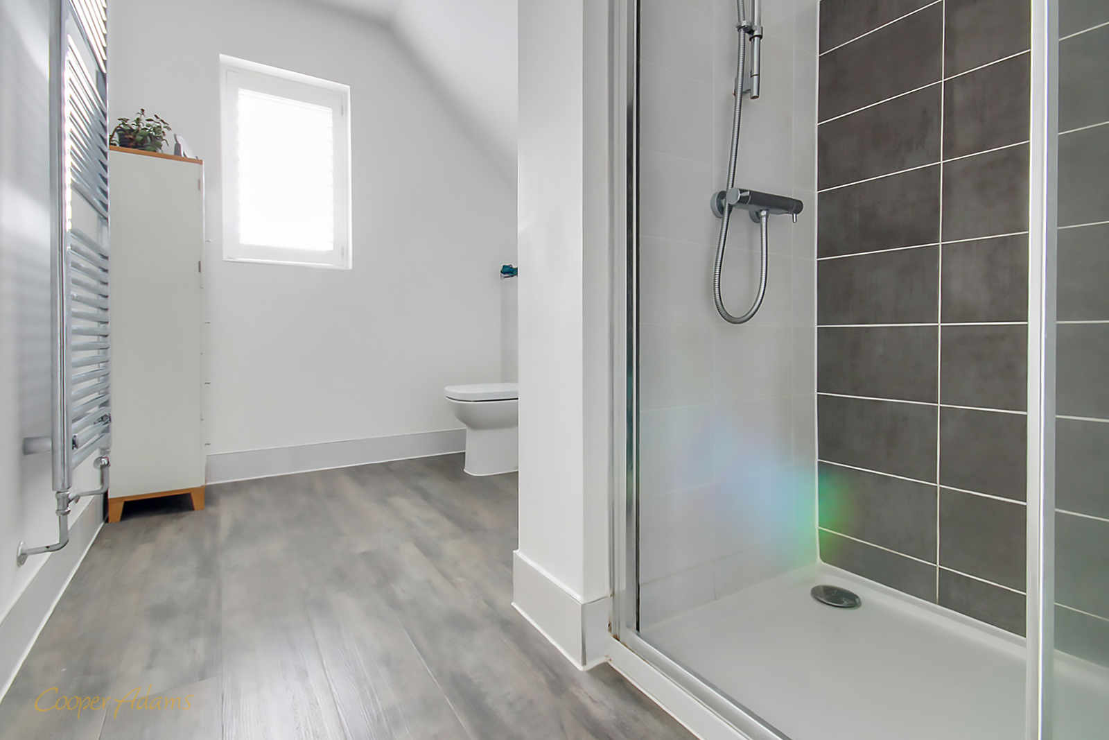 The top floor gives you two more double bedrooms and a separate shower room, with storage on the landing.