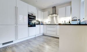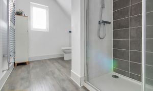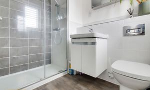 On the first floor, the main bedroom has a walk in wardrobe and its own shower room. There is also a second double bedroom with fitted wardrobes, a bathroom and additional storage.