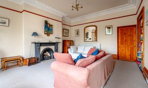 Set in a prime position on North Parade, just moments from the seafront and award-winning sandy beaches, this attractive bay-fronted Grade II listed character apartment offers generous proportions, high ceilings, and a wealth of period detail. The elegant lounge and dining area is framed by ornate cornices, a decorative ceiling rose, and a traditional fireplace, with a wide bay window drawing in natural light and showcasing views across the greenery outside. A compact yet practical kitchen, fitted with solid wood cabinetry and a large window, sits just beyond and remains bright and welcoming. Two well-sized double bedrooms add further appeal, the principal complete with its own period fireplace and elevated sash-window views, both enjoying the comfort of carpet flooring, while a family shower room with patterned detailing serves everyday needs with ease. Off-road parking adds welcome convenience, and with shops, supermarkets, cafés, restaurants, leisure facilities, and excellent road and transport links all close by, this home combines character and practicality in a sought-after coastal setting.