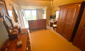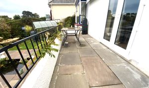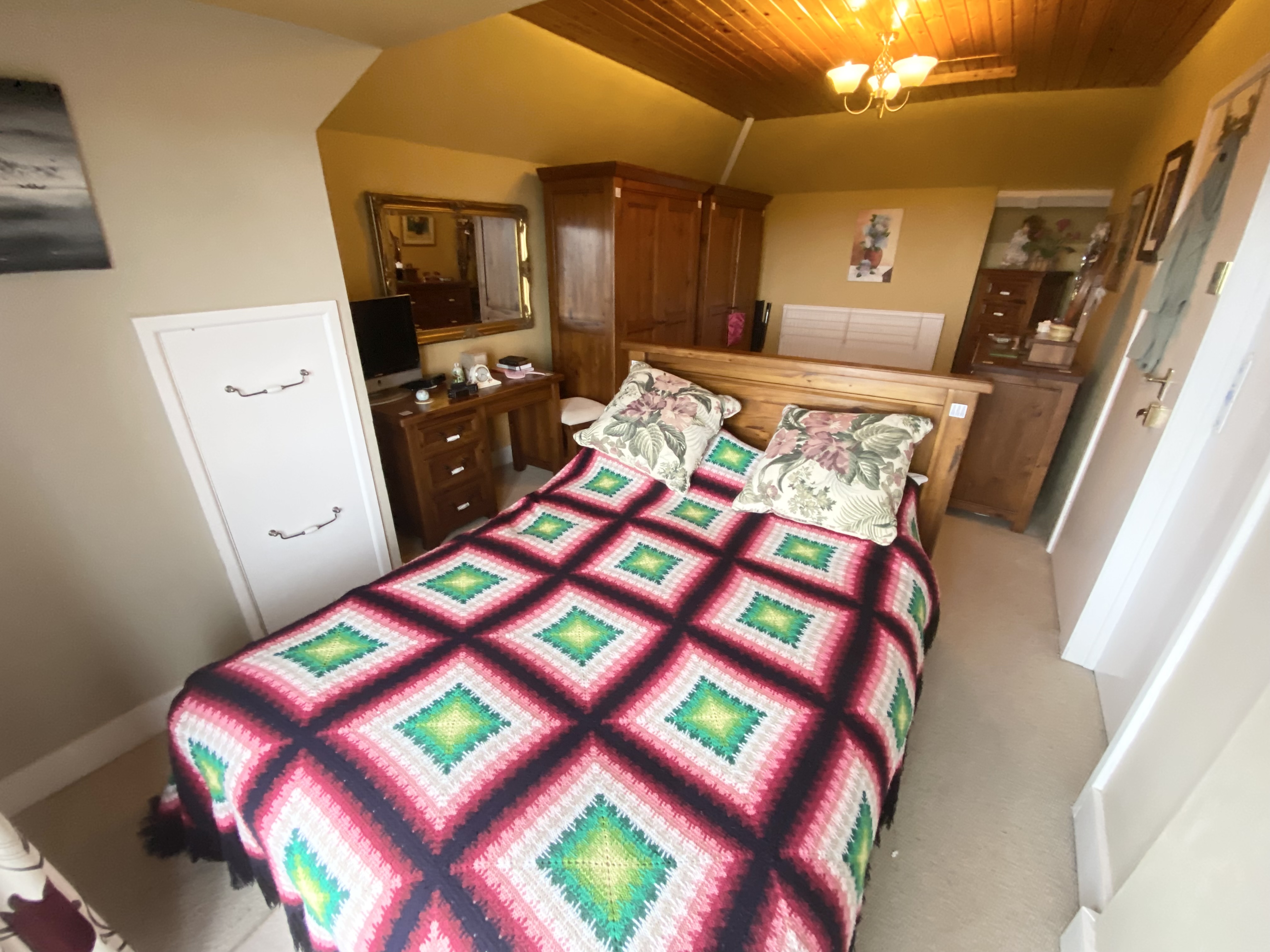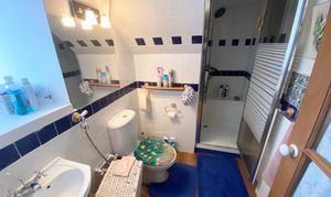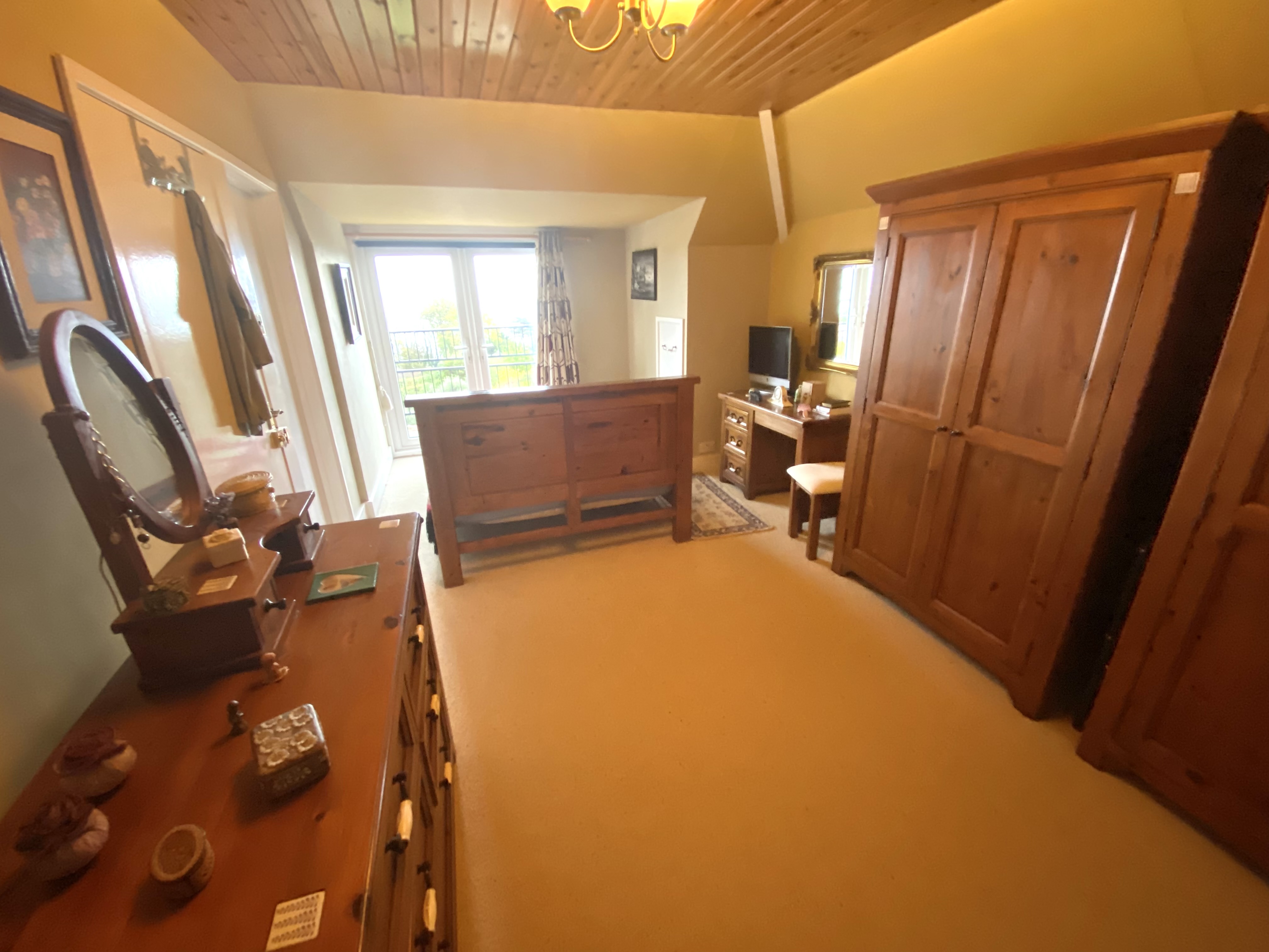 On the first floor there is the master suite with a double bedroom with double doors out to a balcony with panoramic sea and coastal views with room on the balcony for a table and chairs. Next to the bedroom there is a shower room comprising white suite with shower cubicle, low level WC and wash hand basin. There is eaves loft space accessed from both the bedroom and the landing and there is a ceiling loft access also from the bedroom. The boiler is housed in the landing eaves cupboard.