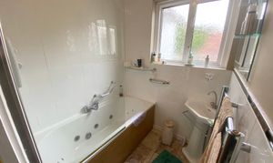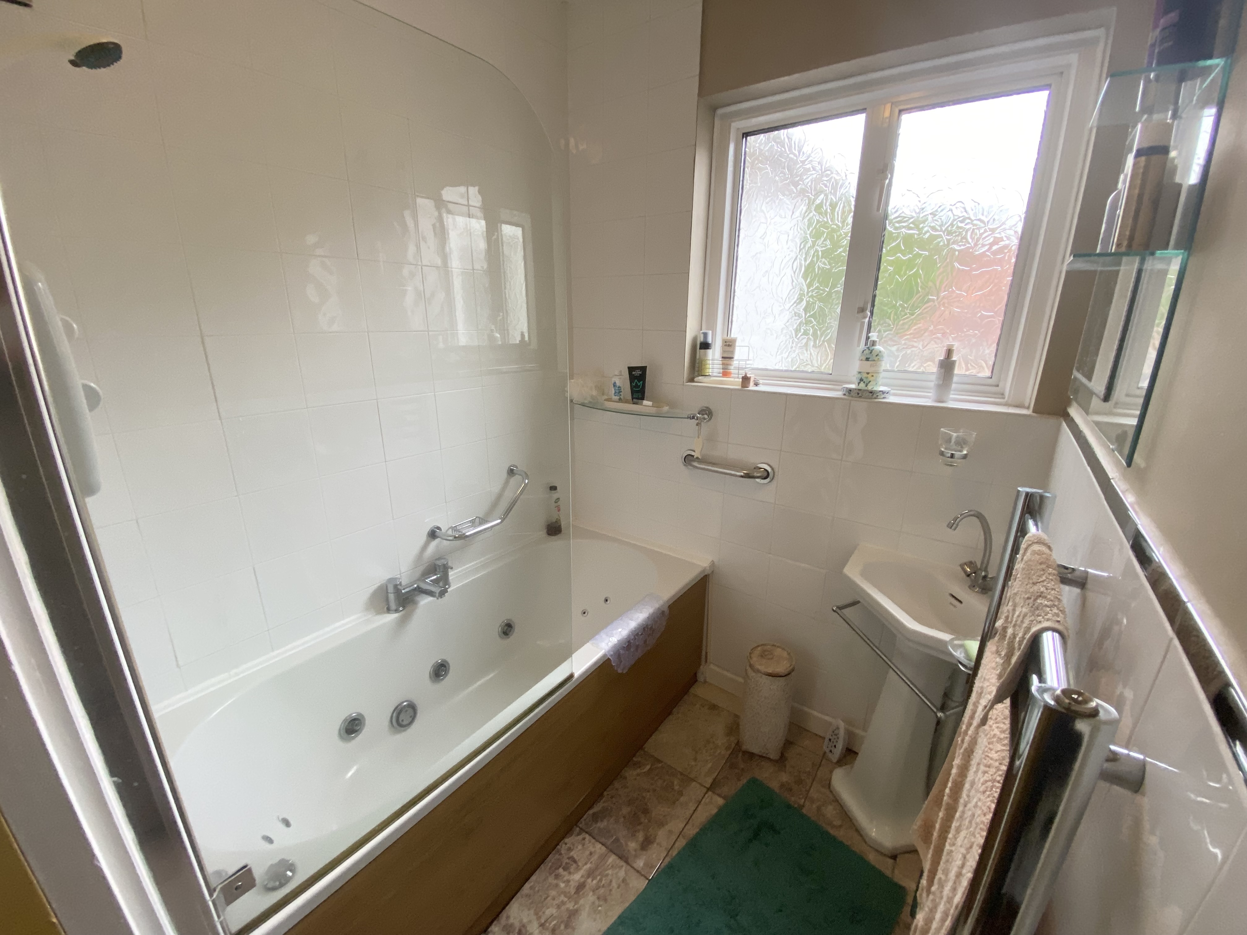 The kitchen comprises base and wall units with a ceramic sink unit and an oven and hob. There are two ground floor bedrooms facing the front and there is a downstairs bathroom with a modern suite comprising spa bath and wash hand basin and a separate WC.