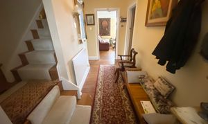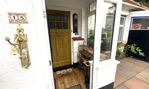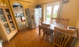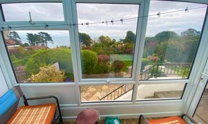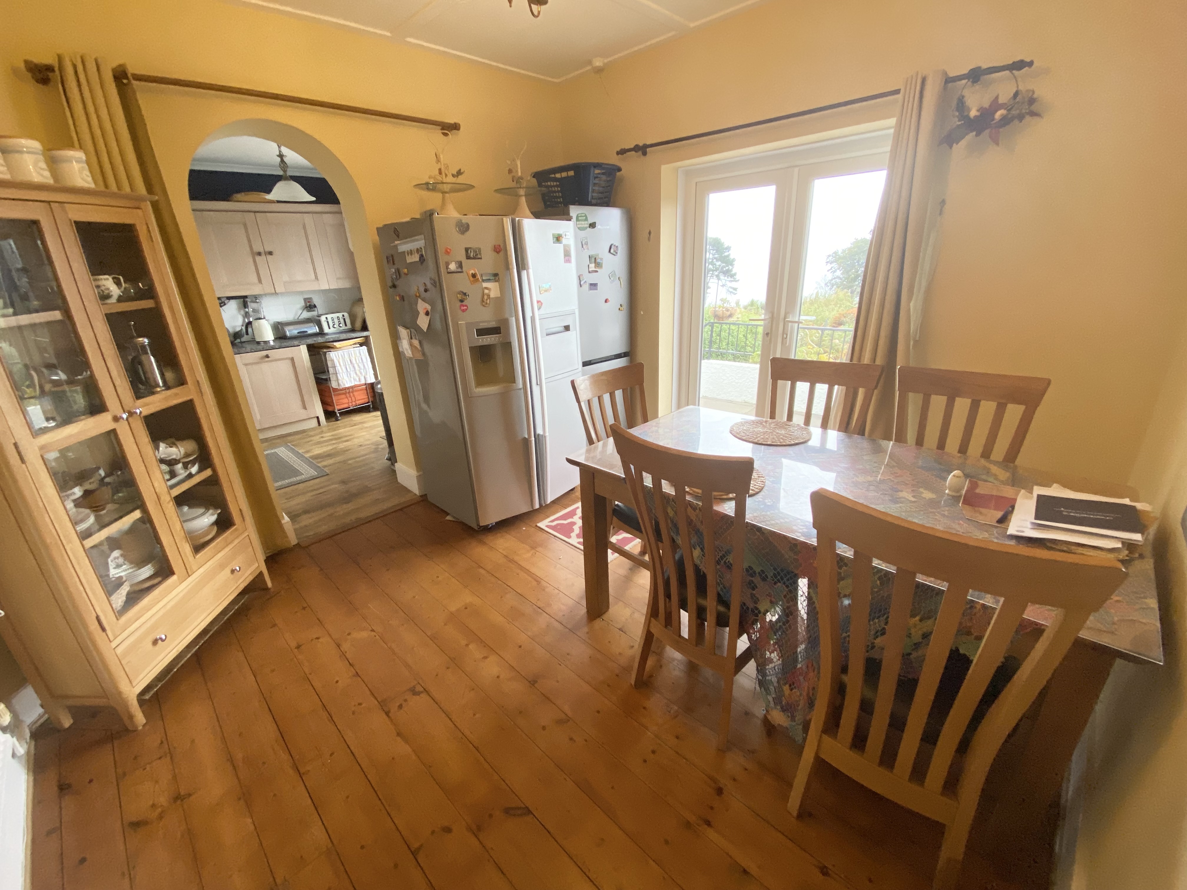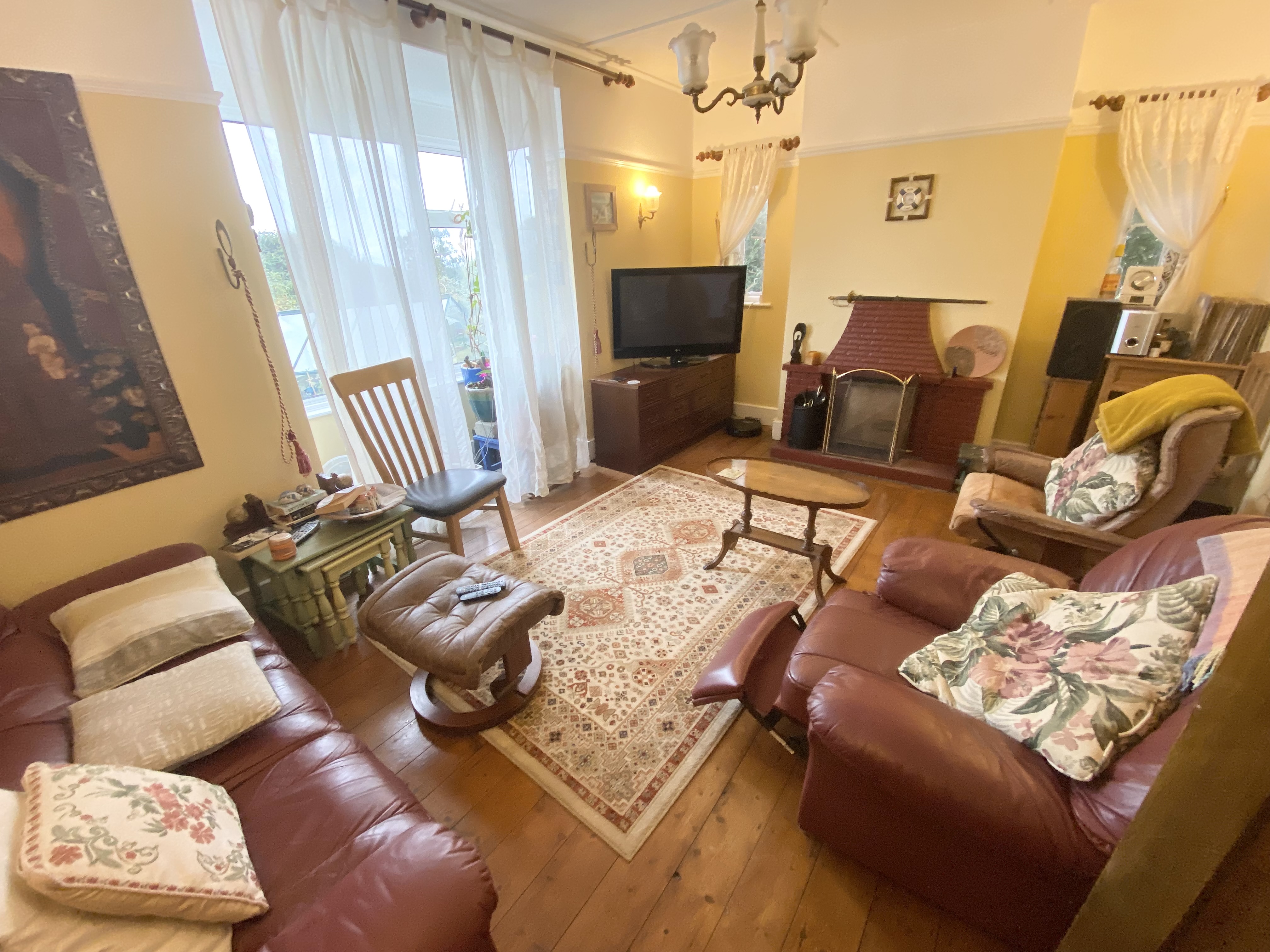 The property is entered via a porch which leads in to the hallway where there is a staircase to the first floor and stripped wooden doors to the principal rooms. The living room, dining room and kitchen are all on the rear garden side of the property, enjoying wonderful coastal views. The living room has a bay window and open fireplace. The dining room has doors leading out to the sun terrace and the kitchen has a sun room off it with a door also out to the rear sun terrace.