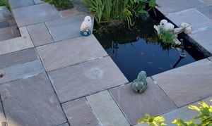 At the front there is newly laid stone paving which extends alongside the property to the rear. There is a driveway and a workshop on the other side. The workshop has doors at the front and the rear so the rear garden can be accessed through it. It has a workbench and power points. At the other side of the property there is a tap and a laundry room. The laundry room has bi-fold doors so you can get a bike in and out, access to under house storage, a sink and plumbing and space for a washing machine. The floor here will be painted in February.