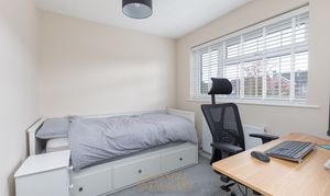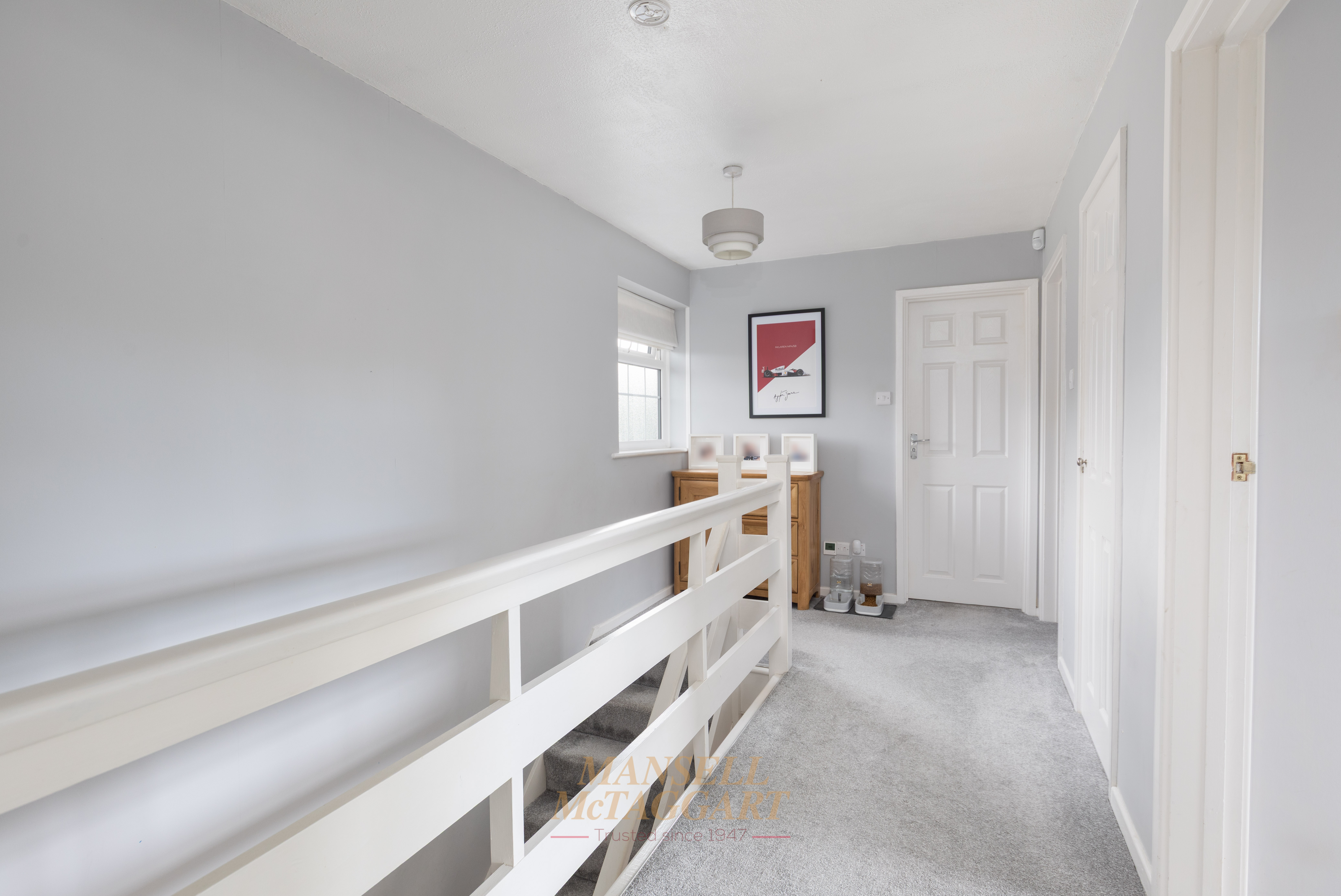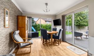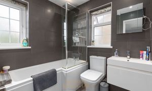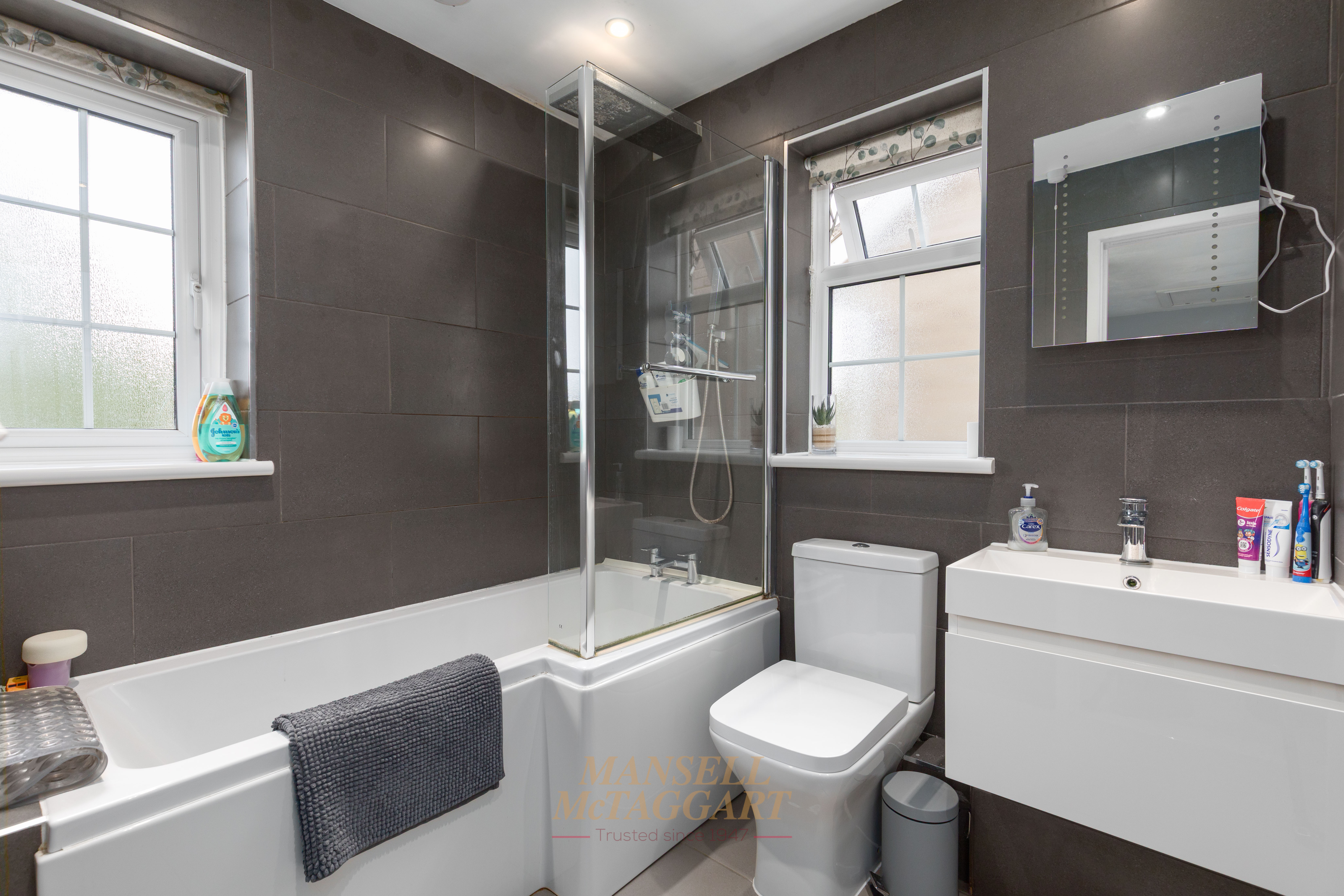 Stairs from the entrance hall lead to the first-floor landing, with natural light provided by a window to the front. There is access to an airing cupboard housing the combination boiler (replaced in 2022) and a part boarded loft with ladder and light. Bedroom one is a large double room, enjoying a pleasant outlook over the rear garden. Bedrooms two and three are also doubles, also with windows to the rear. Bedroom four is a generous single room with a window to the front. The modern family bathroom is fitted with a white suite comprising p-shaped bath with both rain effect and handheld shower attachments, low level WC and wash hand basin, with wall mounted heated towel rail. Frosted windows to the front and side allow in plenty of natural light; the bathroom is finished with tiled walls and flooring and enjoys the luxury of a built-in speaker system and under floor heating.