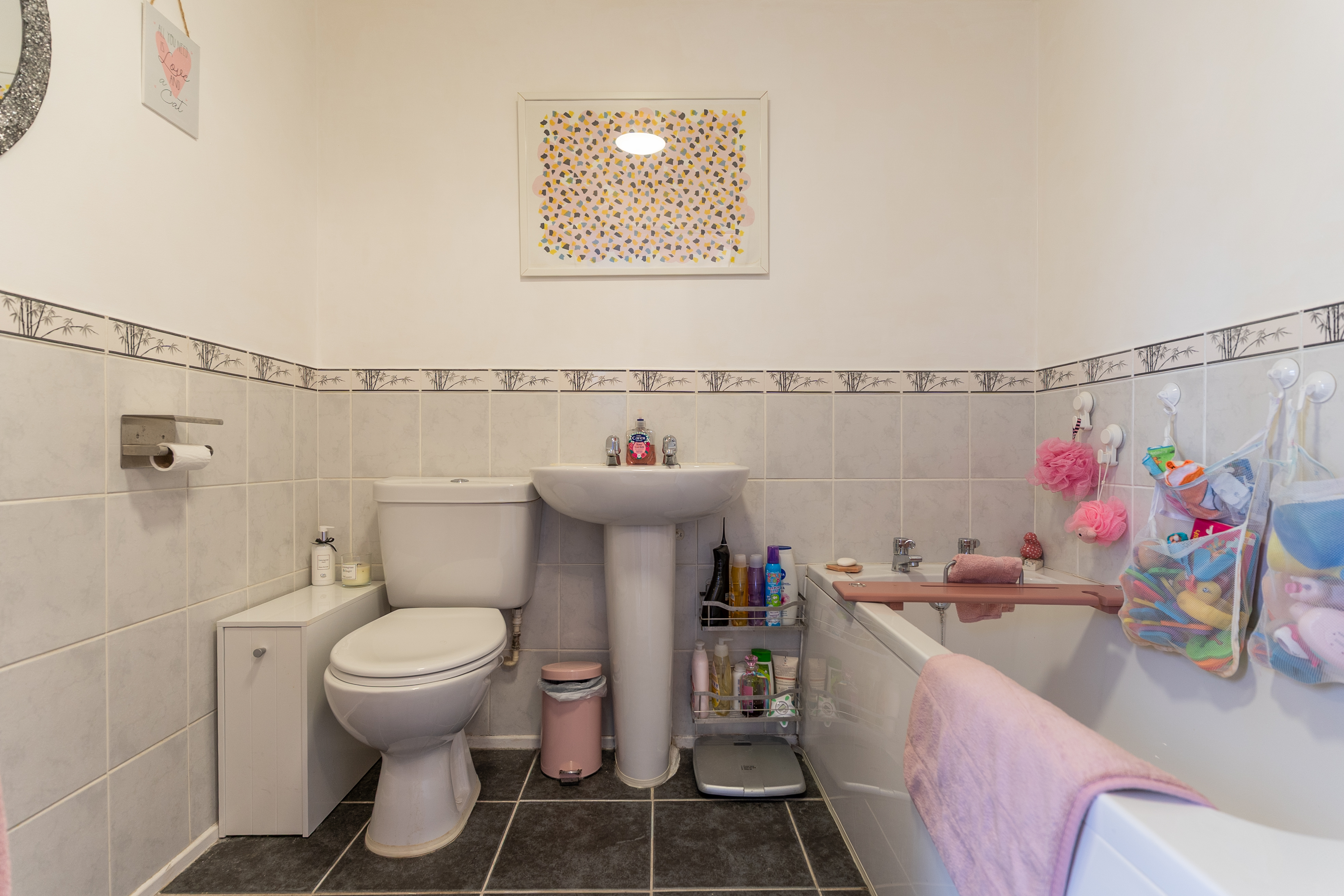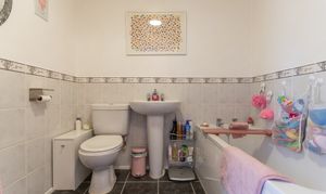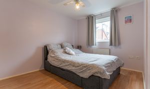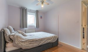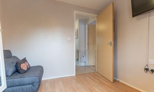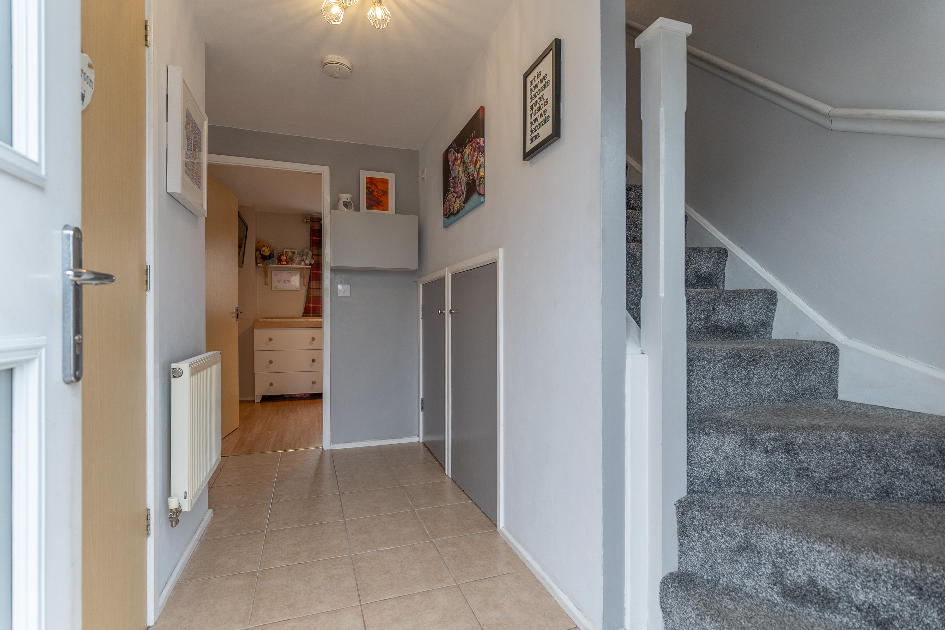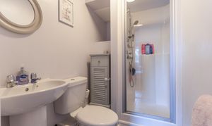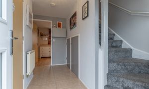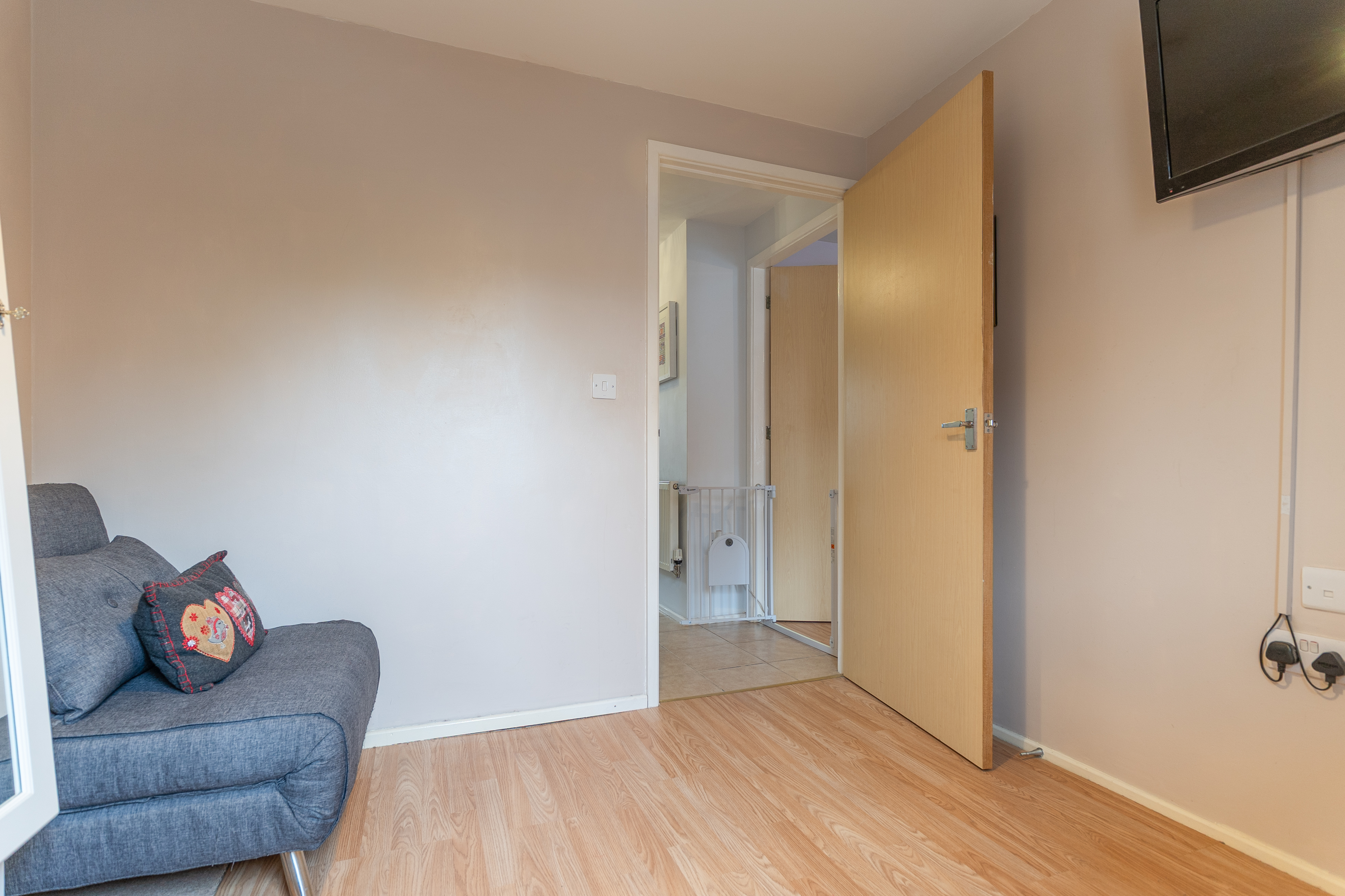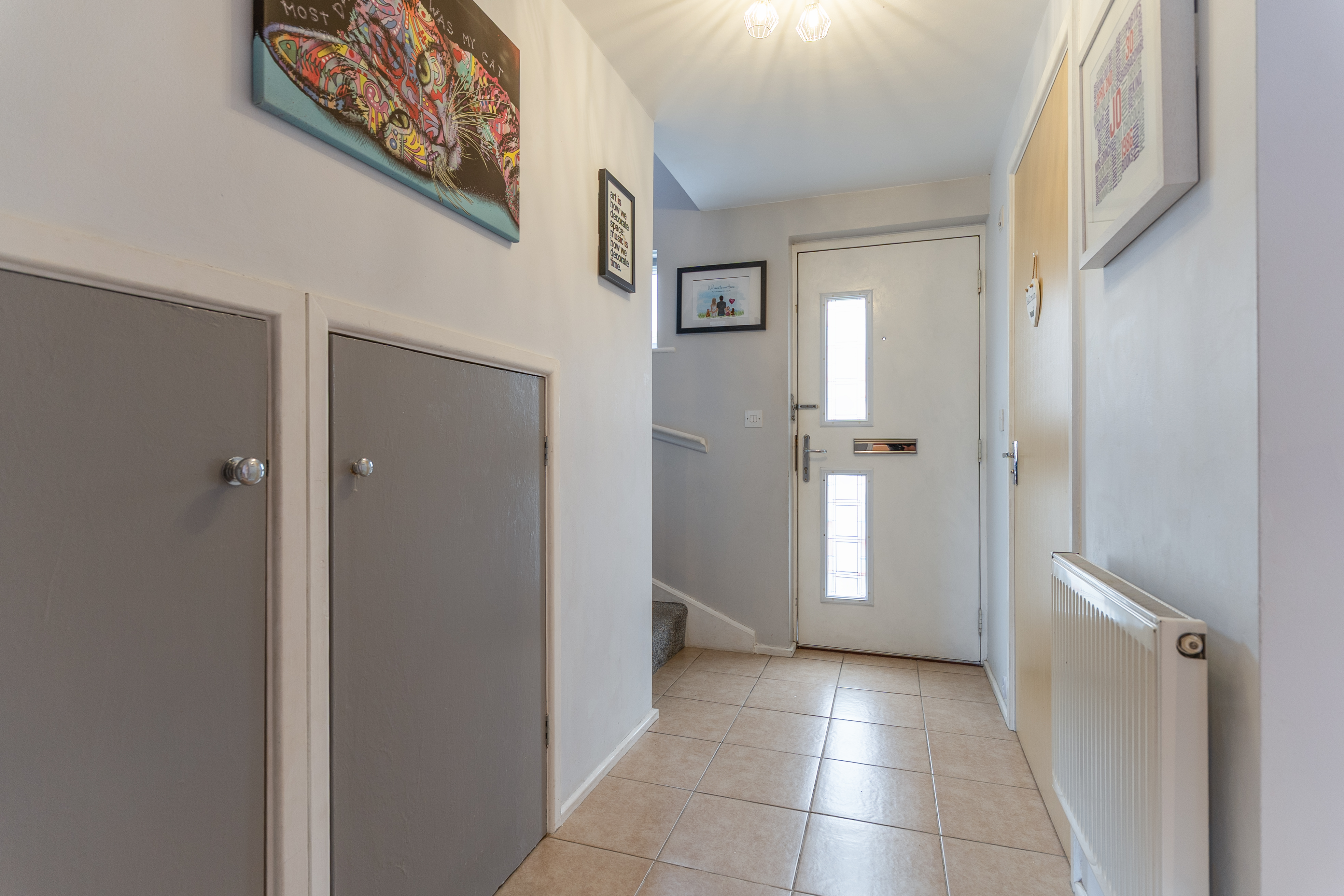 You enter the property through the hallway, which provides access to the staircase leading to the first floor, as well as the ground floor accommodation. There are two large storage cupboards located beneath the stairs, offering excellent practical space. The primary bedroom is a well-proportioned double room and benefits from a private en-suite shower room, while bedroom two is a generous single room, ideal for use as a guest room, home office or dressing room. Completing the ground floor is the family bathroom, conveniently located off the hallway.