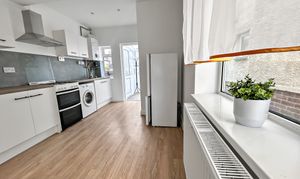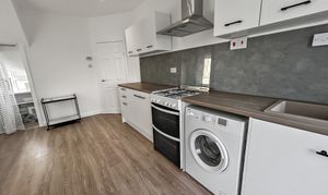 Wall & Base units, sink & drainer with mixer tap, oven and gas hob, space for washing machine and fridge/freezer. Gas boiler. Wood effect flooring. Radiator.