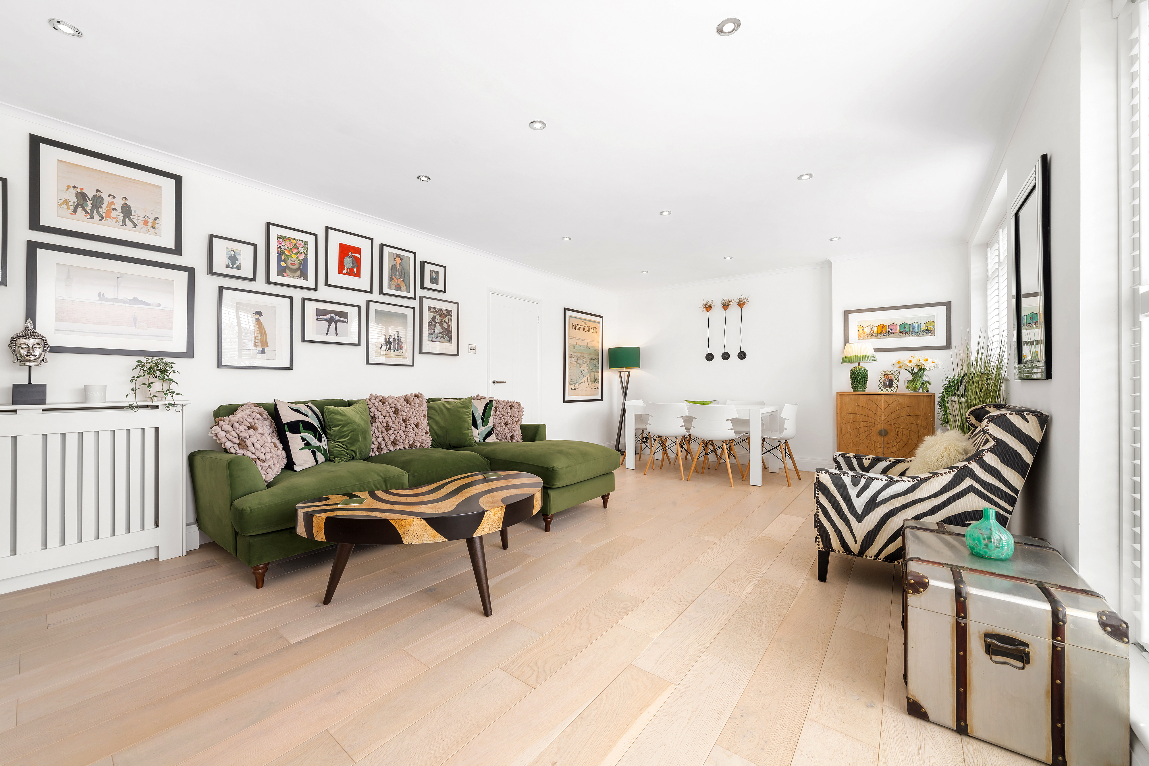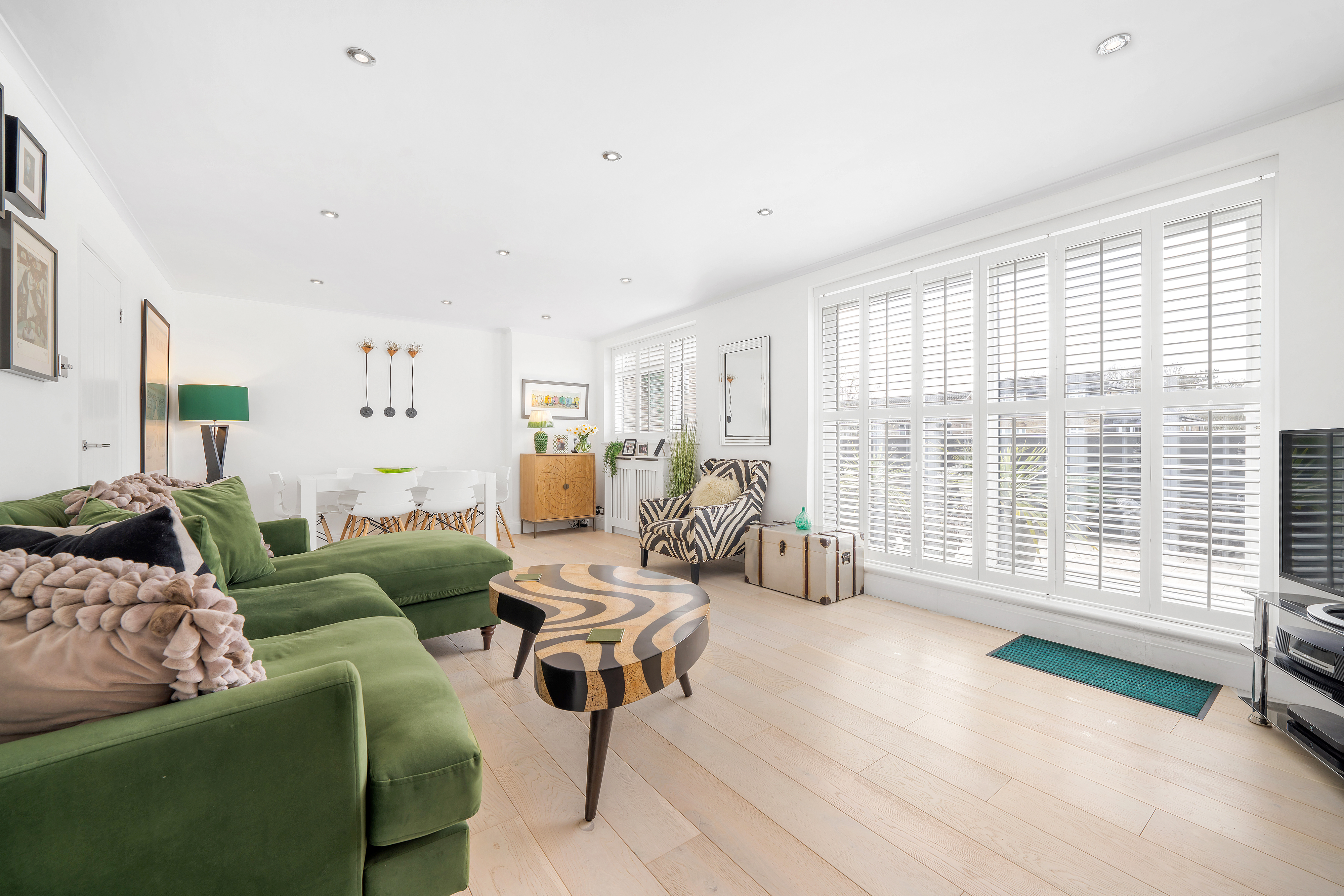 Refurbished to an exceptional standard throughout, this premium apartment features a sleek contemporary kitchen with integrated appliances. The bright and spacious open-plan living and dining area is flooded with natural light, thanks to expansive windows and access directly onto the spacious south-facing private terrace, perfect for entertaining or unwinding in style.
