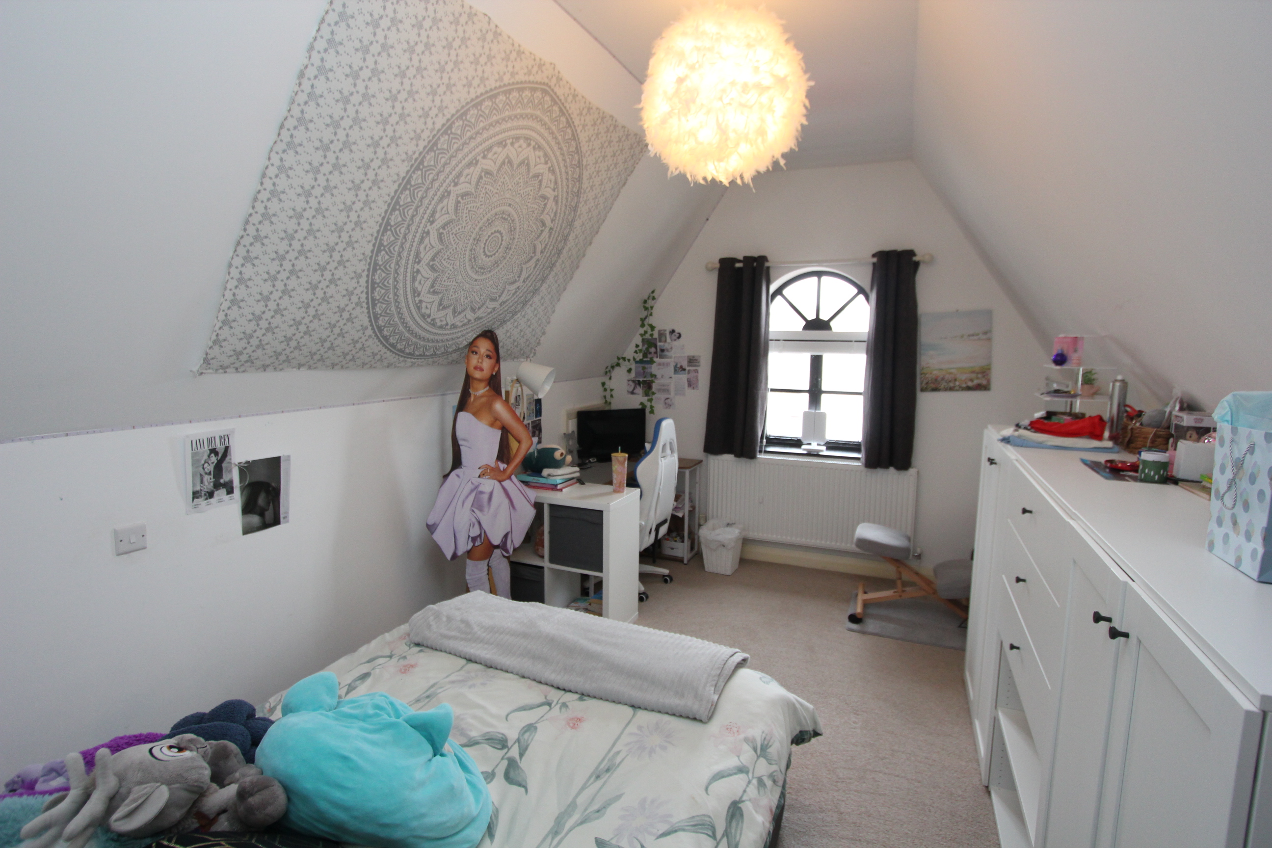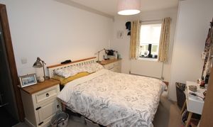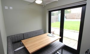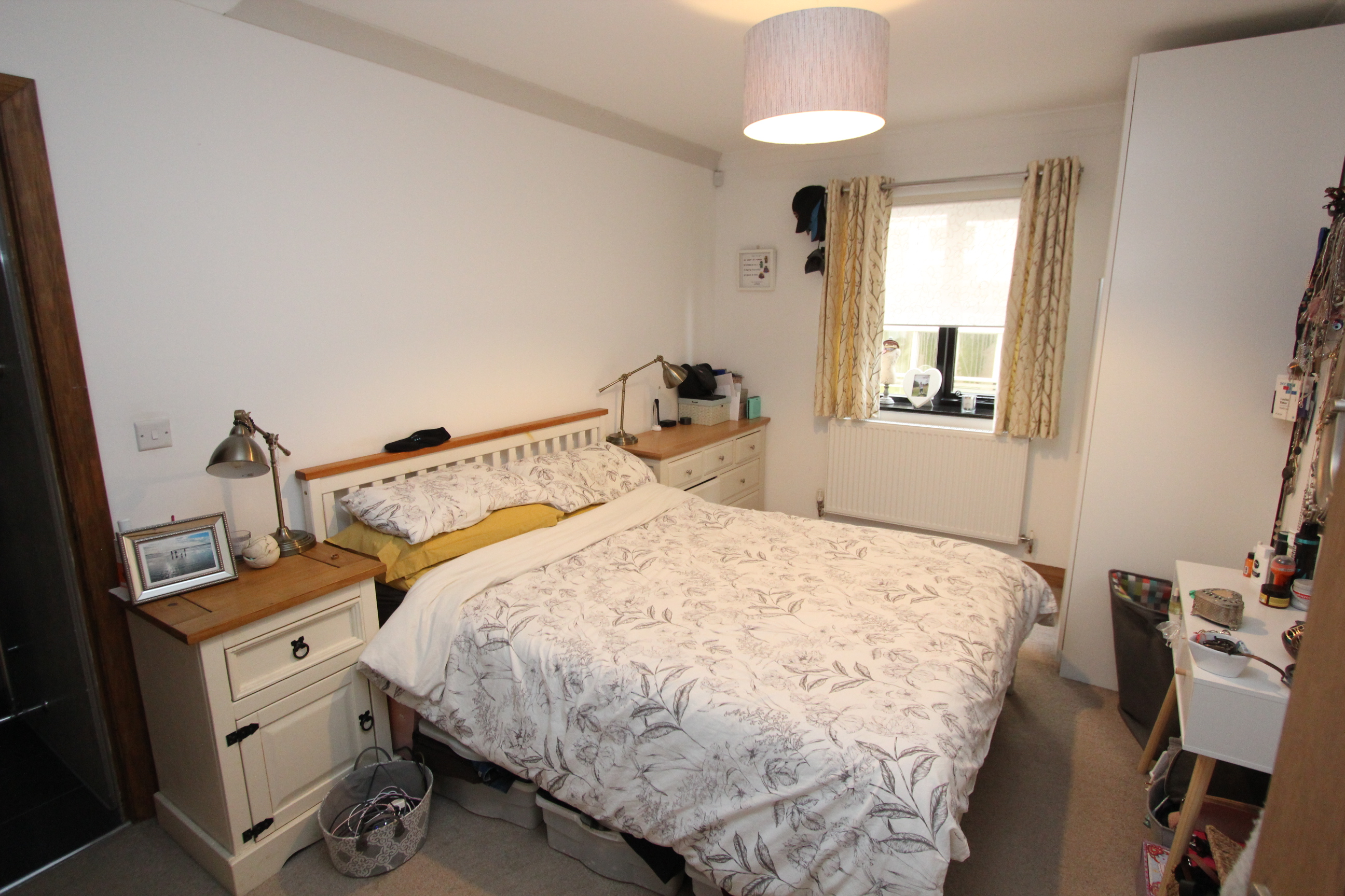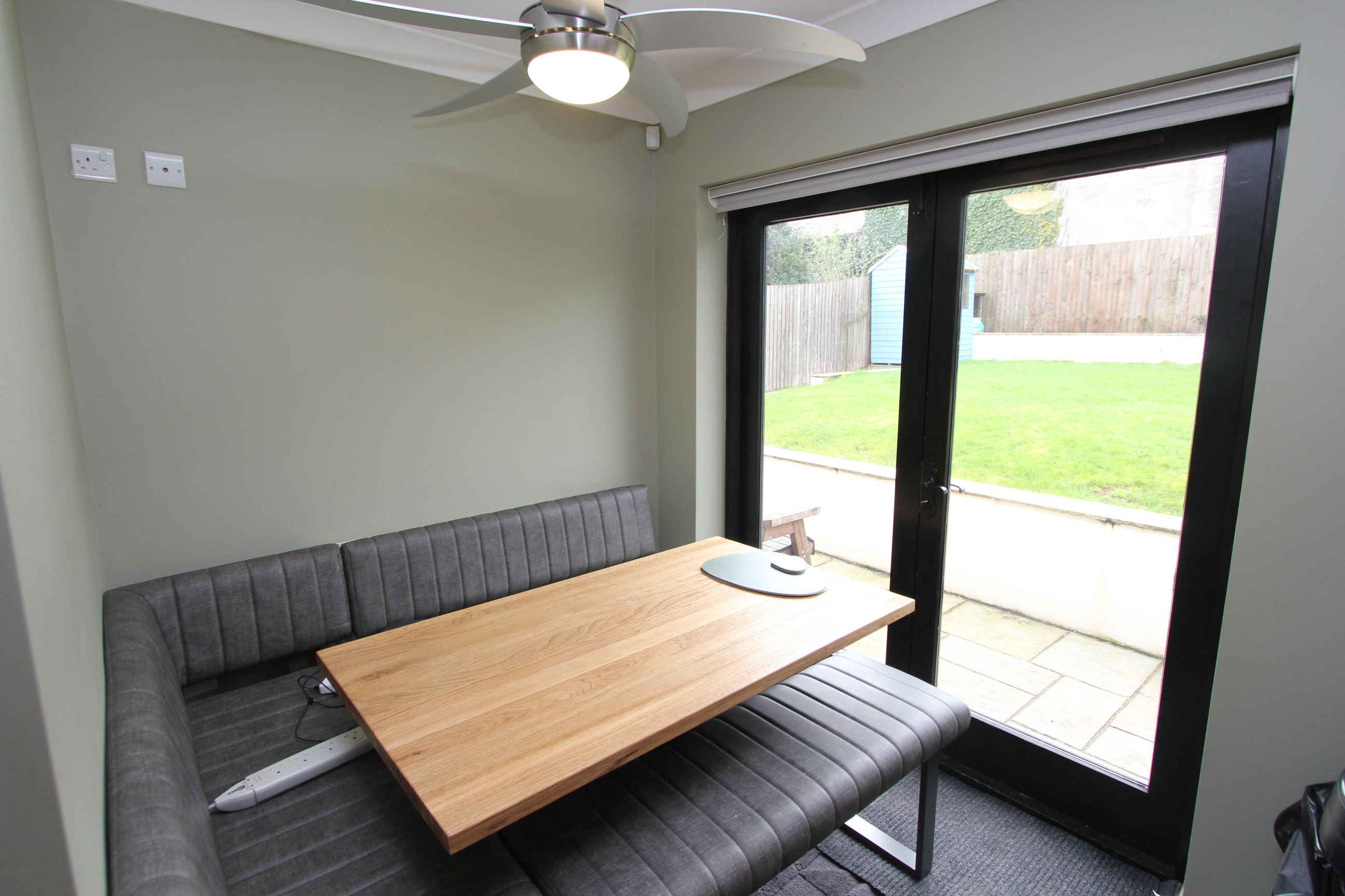 Panelled bath, Velux to rear. Wash hand basin with mixer tap. Low level WC. Ceramic floor tiles. Vertical radiator. Extractor fan.