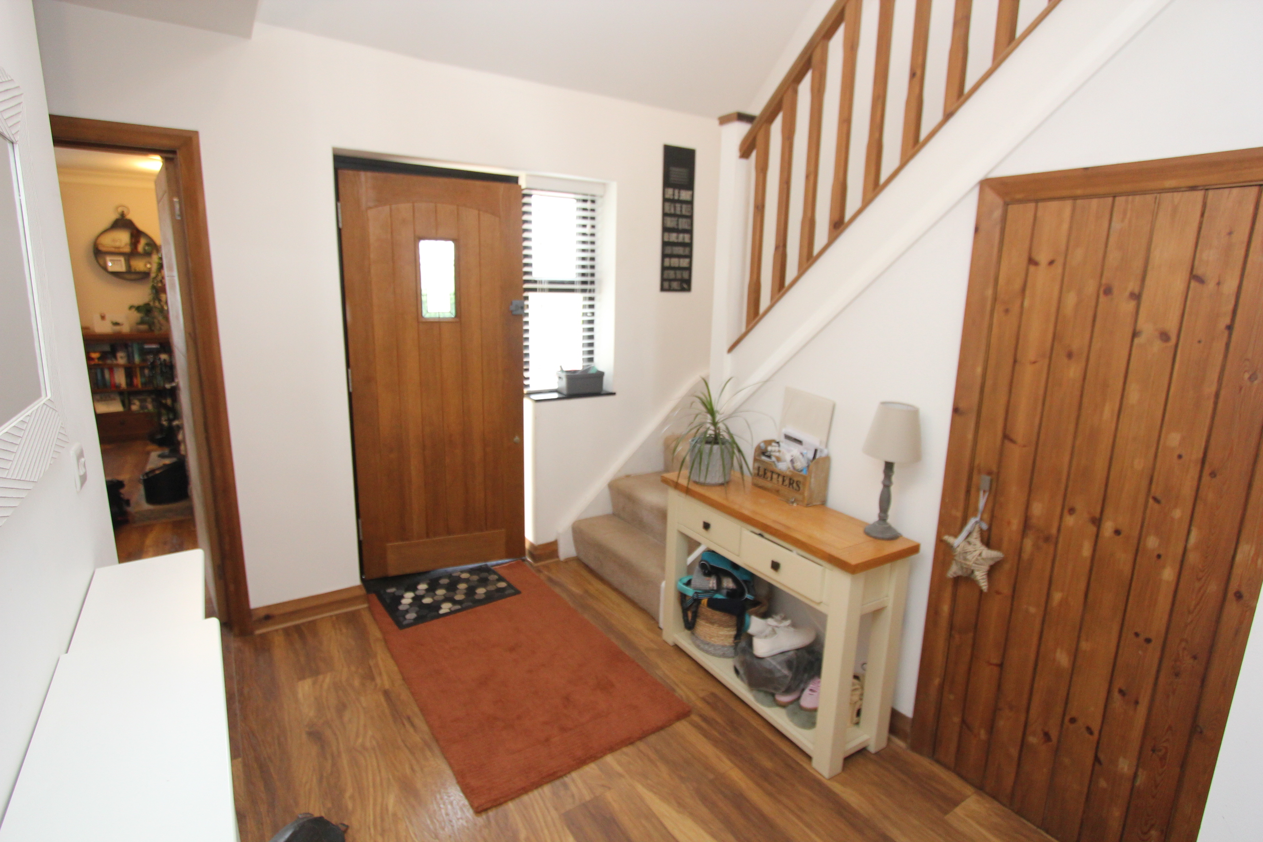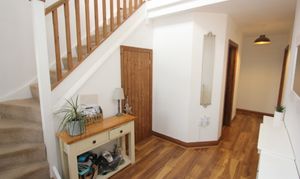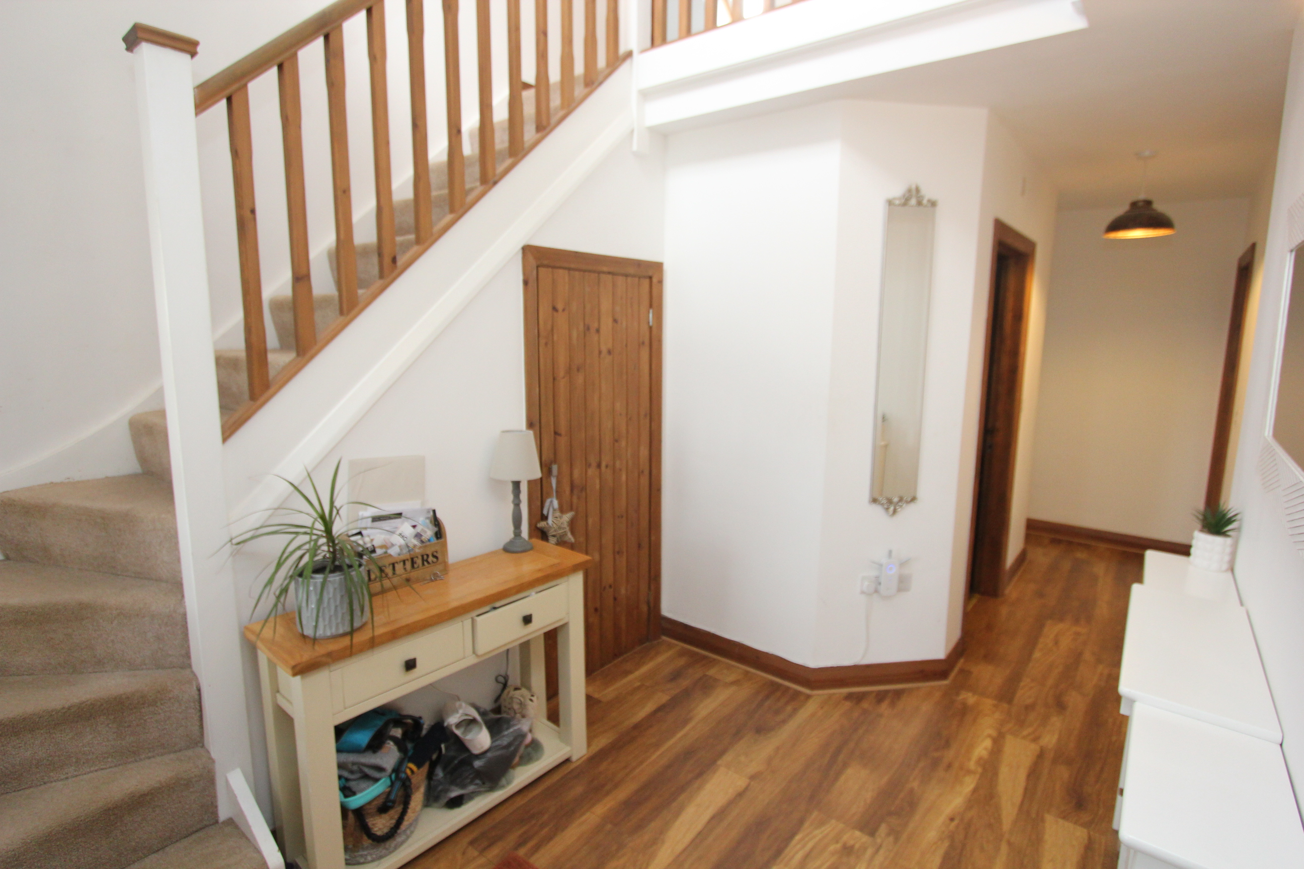 Radiator. Stairs to first floor. Oak doors to sitting room, bedroom 4, bathroom, kitchen/breakfast room and dining room. Under stairs cupboard. Oak front entrance door and UPVC window to front. Engineered wood flooring.