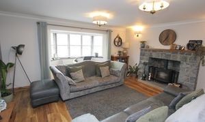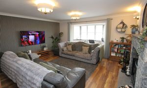 Radiator. UPVC bay window to front. Stone fireplace with clear view log burner and stone hearth. Engineered wood flooring.