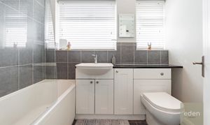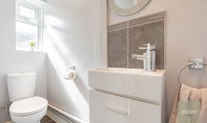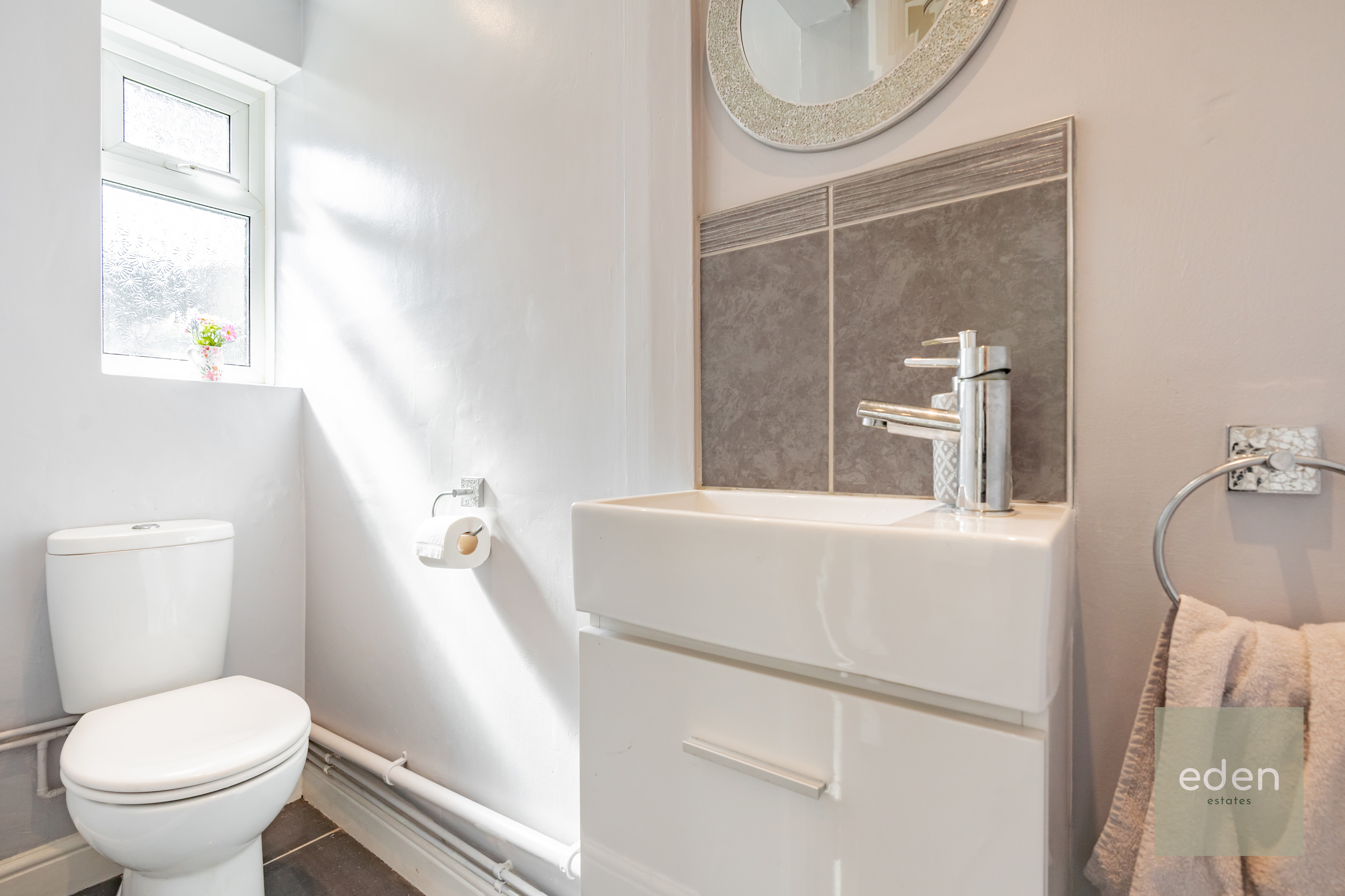 The stylish family bathroom is finished to a high standard, complemented by a convenient downstairs WC for guests.