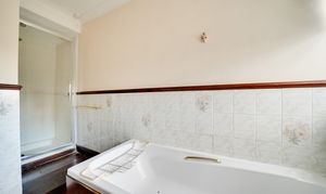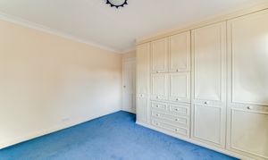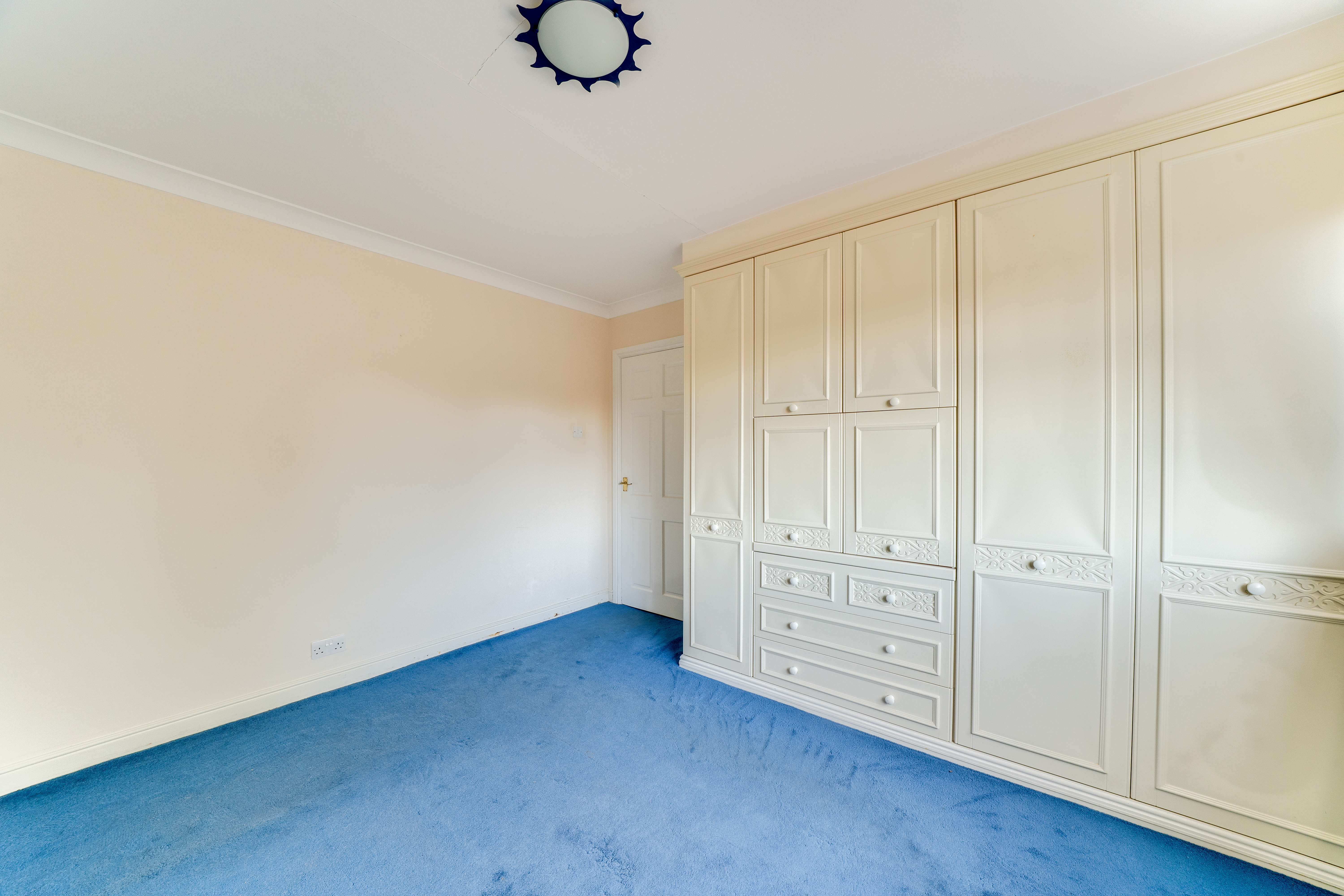 On the opposite side of the hallway are two well-proportioned double bedrooms, each featuring built-in wardrobes, served by a large bathroom fitted with a white suite comprising a bath and separate shower cubicle.