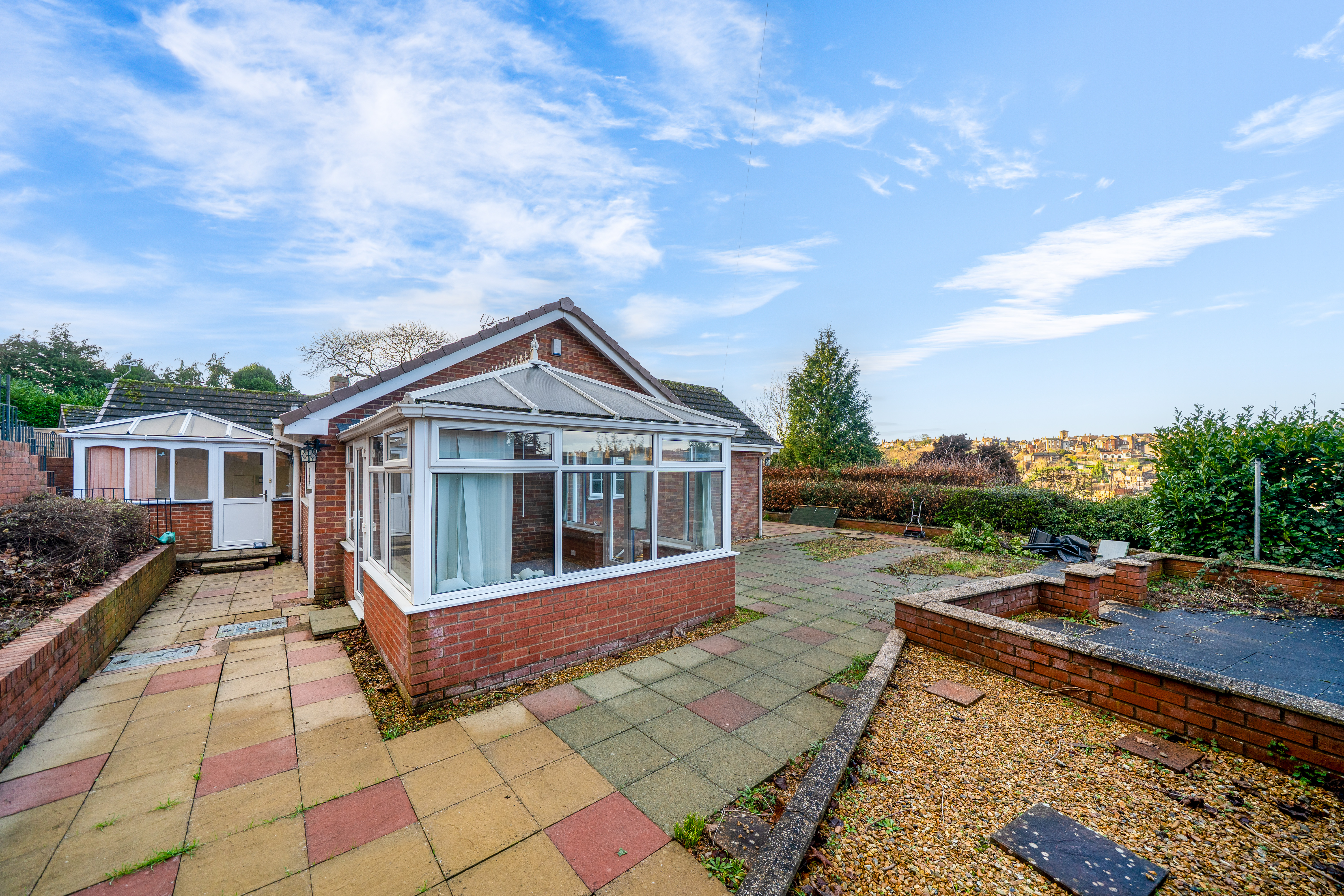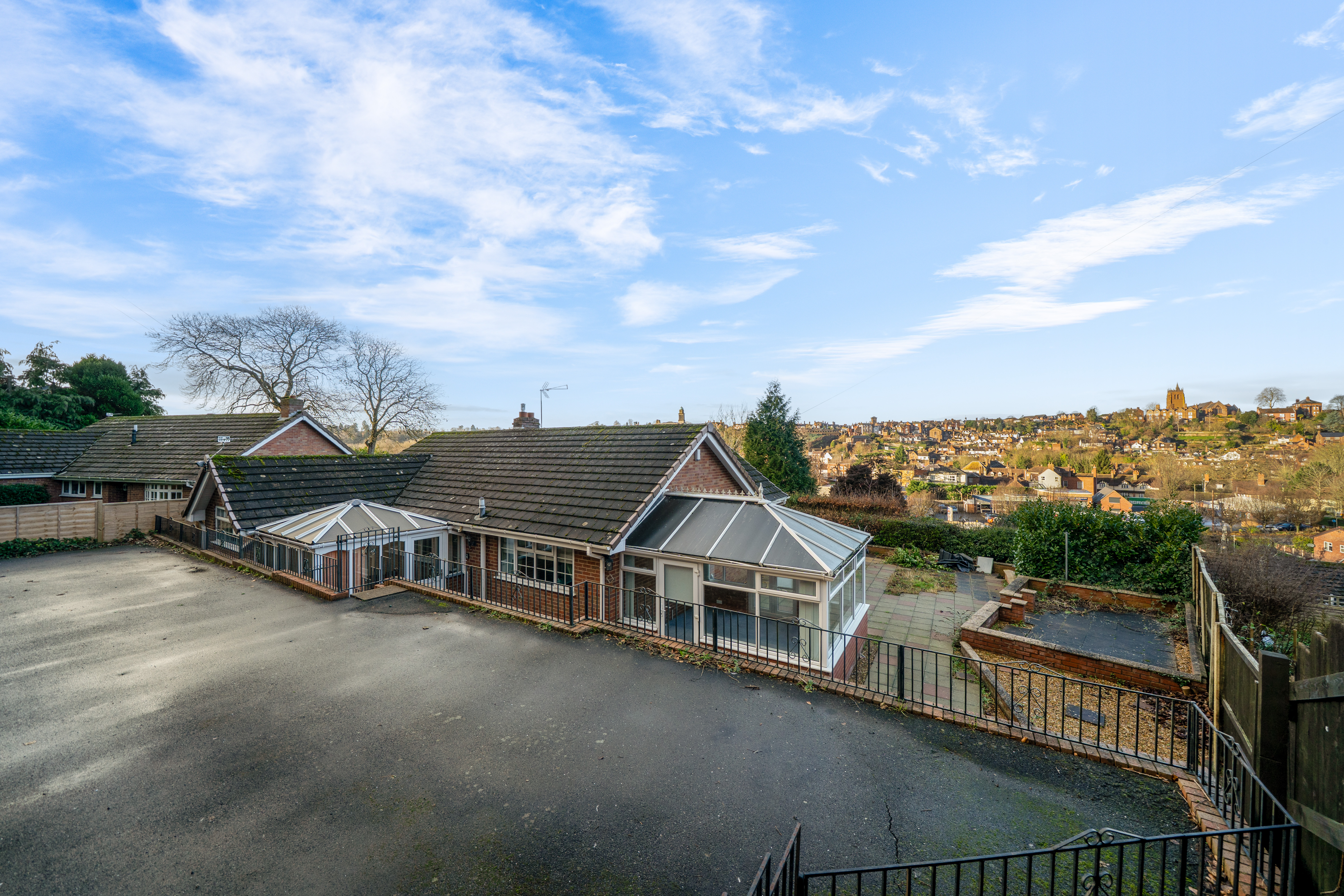 Externally, the property is approached via a private driveway providing parking for two to three vehicles. Steps lead down to one of the home’s standout features: a wrap-around terrace extending to three sides of the bungalow. This superb outdoor space offers breathtaking views across Bridgnorth’s historic market town and provides an exceptional setting for entertaining, relaxing, and enjoying the sunshine throughout the day.