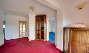 The bungalow is entered via a spacious central reception hall providing access to all principal rooms. To one side lies the impressive split-level living room, extending over 22 feet in length and open plan to a generously sized dining area—both perfectly positioned to make the most of the elevated outlook.