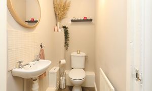 The modern and neutral fitted kitchen complements the ground-floor accommodation perfectly, with plenty of natural light from the bay window, providing both style and functionality. A convenient ground-floor W/C further enhances the practicality of the home.