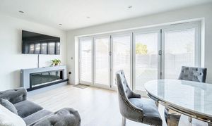 - Contemporary Open Plan Family Room / Kitchen With Bi-Folding Doors To Garden