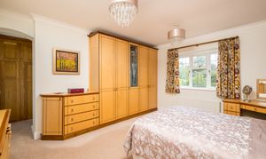 For big families and overnight guests, the first floor has five double bedrooms. The primary has the advantage of fitted wardrobes, a dressing area, and a contemporary en suite shower room replaced in 2017. Bedroom two is dual aspect, also with fitted wardrobes, and works as a guest bedroom being next to a shower room. The remaining three bedrooms share the four-piece bathroom.