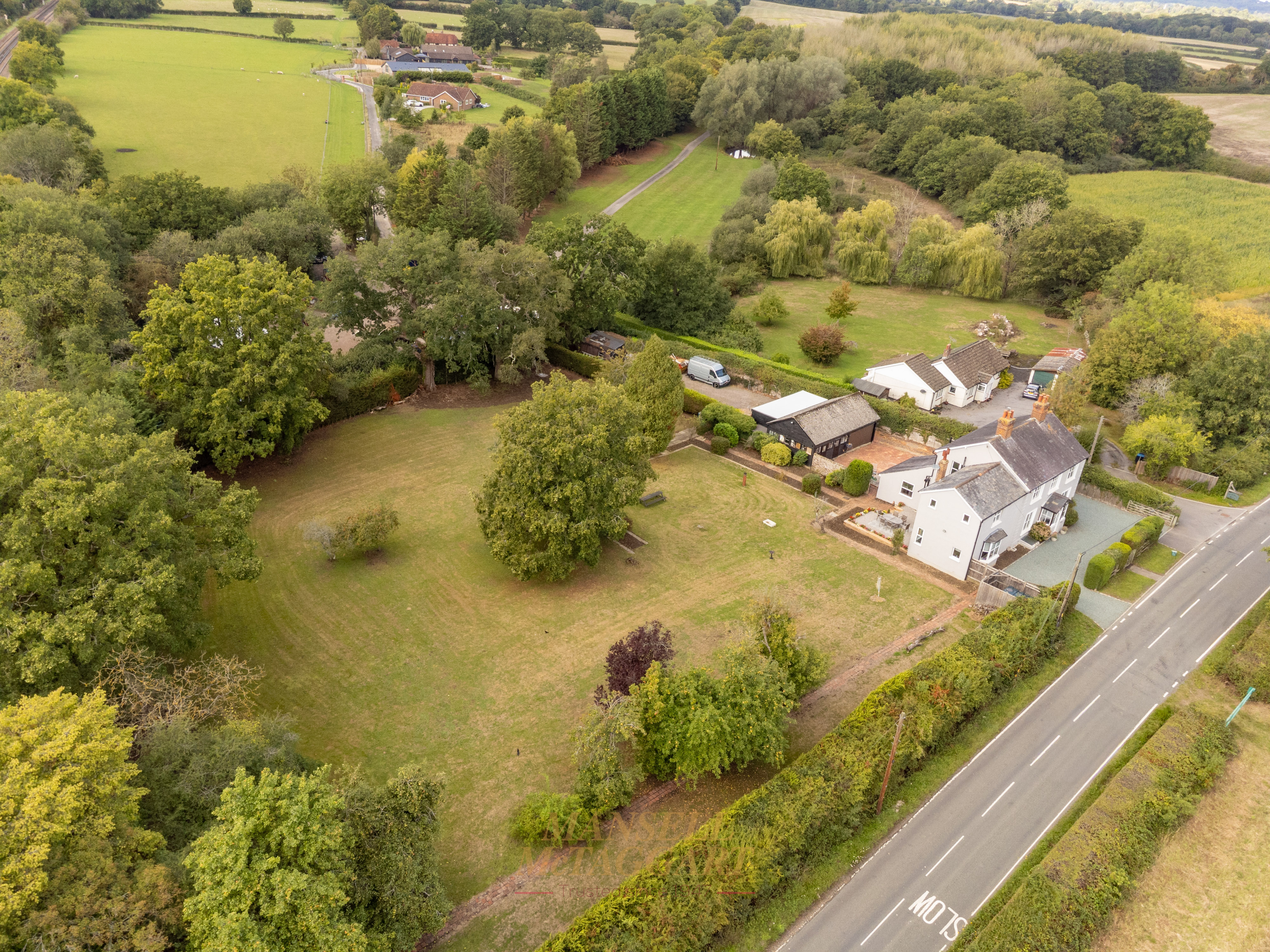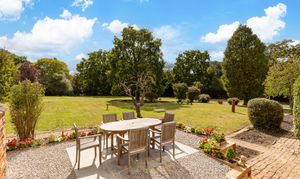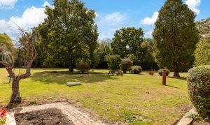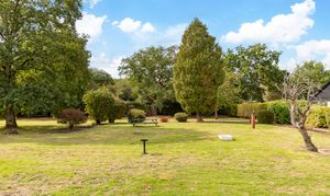 - Extensive lawns, trees, including apple and pear trees and established shrubs in the rear garden, together with far-reaching views across fields to the front