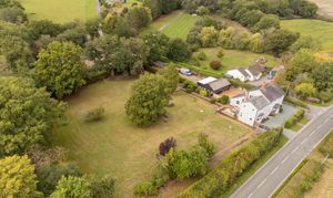 The property is set back from the road with two 5-bar gates flanking an in-and-out driveway with off-road parking for five plus cars. A separate original brick drive from the side of the property leads to a double garage, courtyard with more parking if needed, outbuildings and rear workshop with a large yard space. The In and Out Driveway is finished in a Welsh green granite chippings bordered with granite setts Creating Flower and plant soil borders to the face of the house then with high hedges also to the front, ensuring privacy to the property.