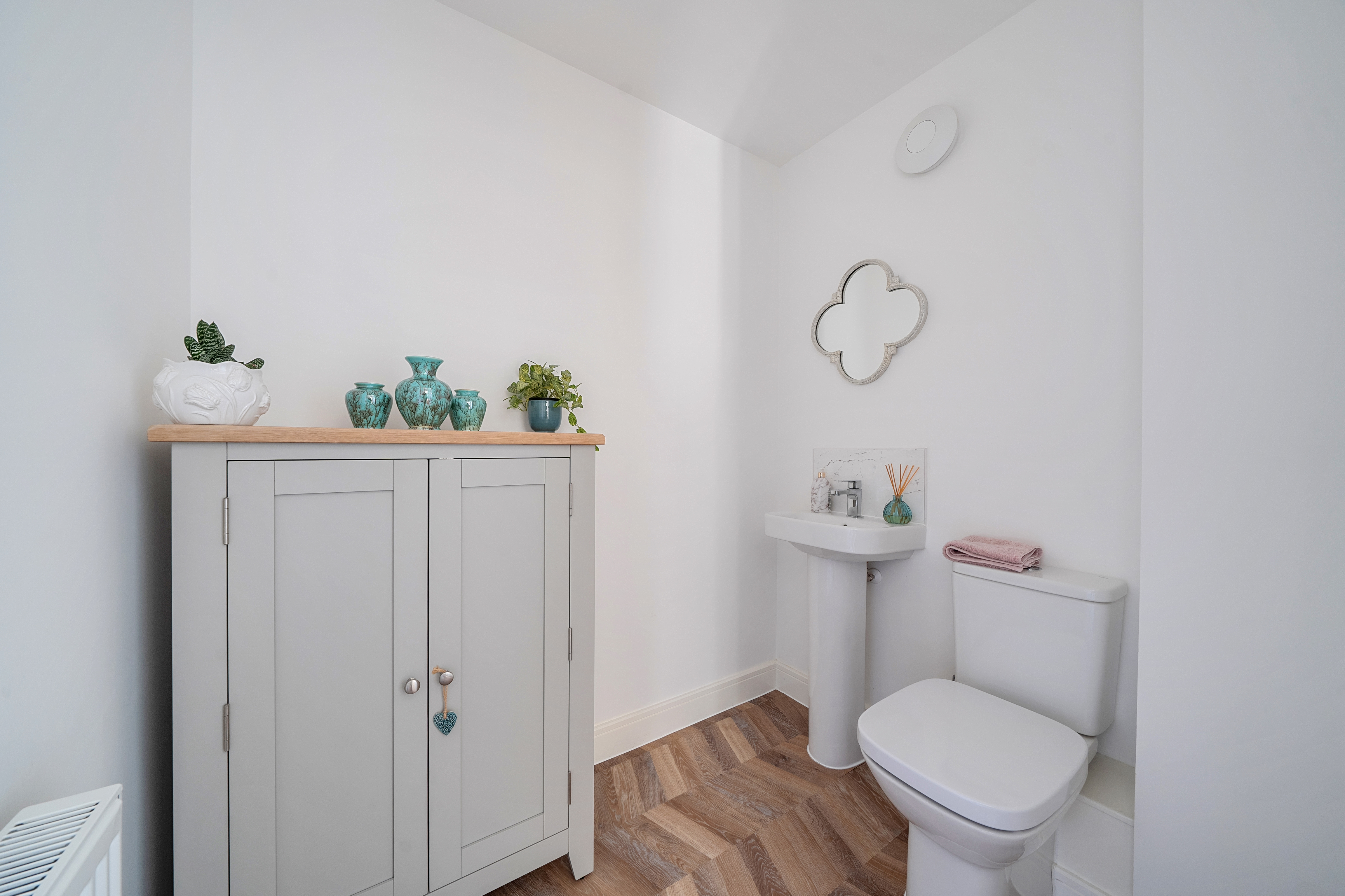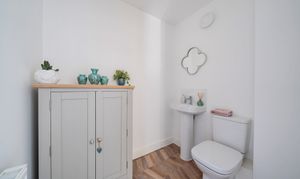 Upon entering, you are welcomed by a bright entrance hall leading to a generously sized living room, ideal for both relaxing and entertaining. The contemporary fitted kitchen provides ample storage and workspace, complemented by integrated appliances and a dining area perfect for everyday family life or hosting guests. A downstairs cloakroom enhances the convenience of the ground floor layout.