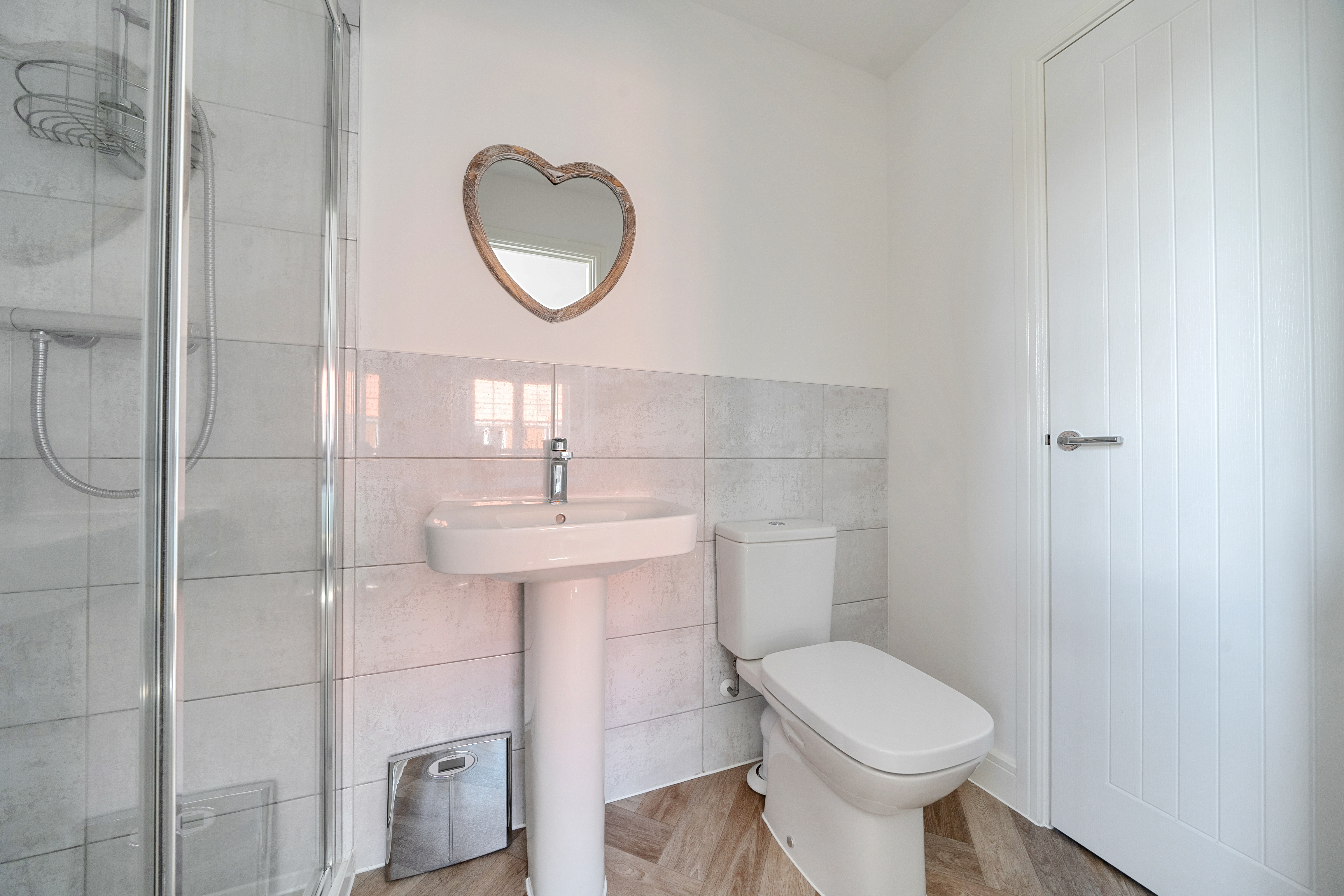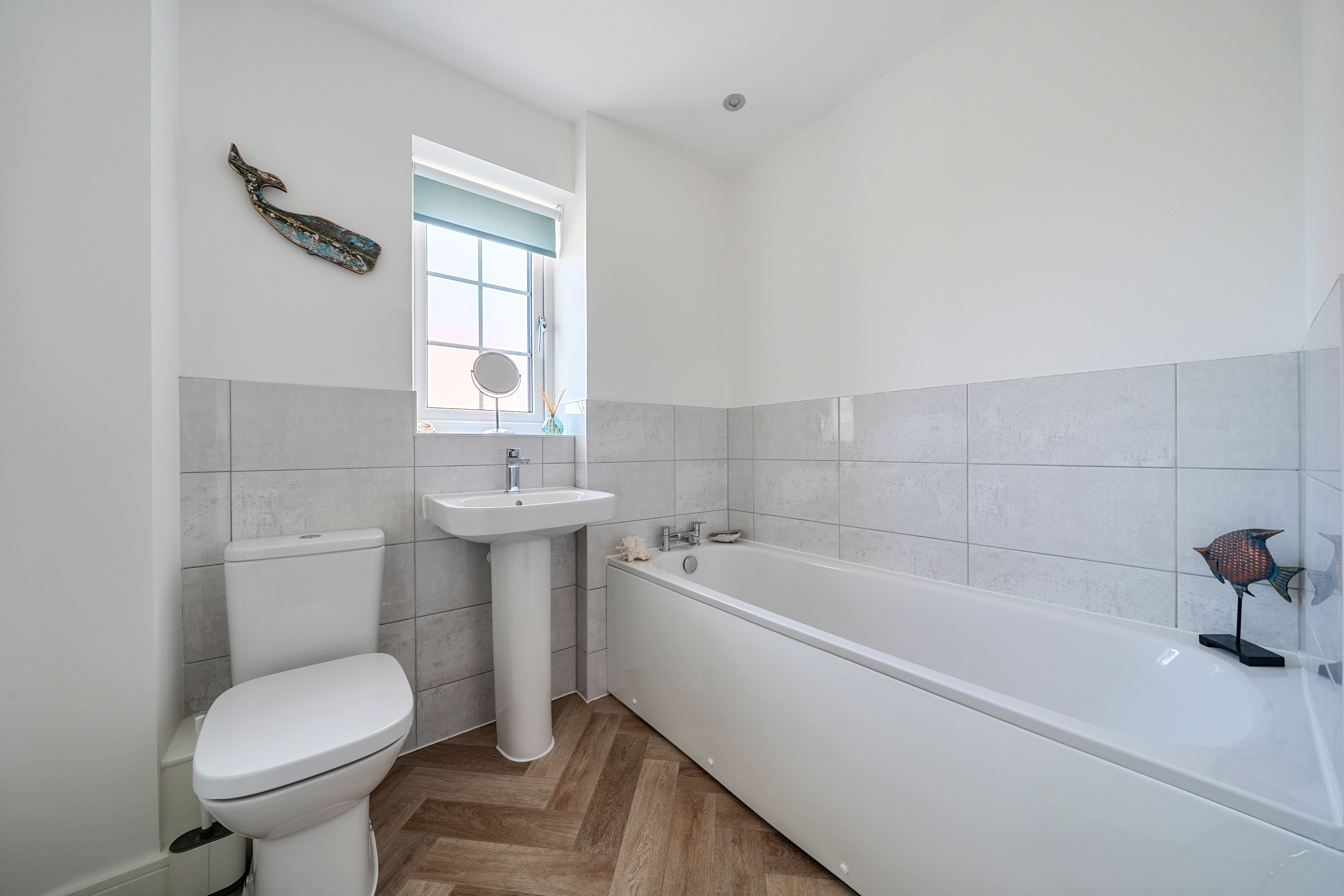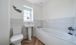 Upstairs, the property boasts three well-proportioned bedrooms, each designed to maximise natural light and comfort. The principal bedroom features a stylish en suite shower room, creating a private retreat. The remaining bedrooms are served by a modern family bathroom, finished with quality fixtures and fittings.